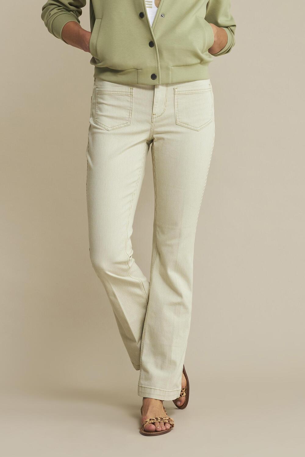Deze casual broek van Red Button is een stijlvolle toevoeging voor het voorjaar. De flared pasvorm met subtiele streepdetails geeft deze broek een elegante uitstraling die bij elke gelegenheid past. Gemaakt van een duurzame mix van 63% katoen, 31% polyester, 4% viscose en 2% elastan, biedt deze broek zowel comfort als beweging. De regular waist en de normale lengte maken het een perfecte keuze voor dagelijks gebruik. Met steekzakken aan de voorzijde en een knoop-/ritssluiting, is deze broek zowel praktisch als modieus. De zachte sage-kleur zorgt ervoor dat je deze broek gemakkelijk kunt combineren met verschillende tops, van een casual T-shirt tot een elegante blouse. Ideaal voor een ontspannen dag in de stad of een gezellig etentje, deze broek van Red Button zorgt ervoor dat je er modieus uitziet zonder in te boeten op comfort. Meer informatie: Binnenbeenlengte is 78 cm bij maat 36/33.