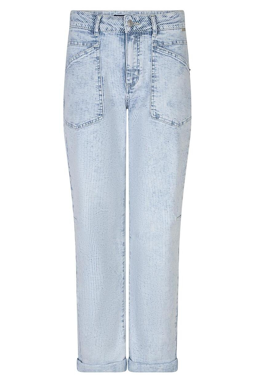 Deze stijlvolle jeans van Red Button combineert comfort met een moderne uitstraling. De opvallende bleached wash met subtiel streeppatroon geeft deze jeans een unieke look die perfect past bij het voorjaar. Gemaakt van een mix van katoen, polyester en elastan, biedt deze jeans de ideale combinatie van zachtheid en stretch. De tapered fit zorgt voor een flatterend silhouet, terwijl de high waist een klassieke touch toevoegt. Met praktische steekzakken en een knoop- en ritssluiting is deze jeans niet alleen modieus, maar ook functioneel. De 7/8 lengte maakt het makkelijk om te combineren met zowel sneakers als sandalen, ideaal voor casual dagen of een ontspannen avondje uit. De Red Button jeans is een veelzijdige toevoeging aan je garderobe en is geschikt voor uiteenlopende gelegenheden, van een dagje winkelen tot een informele lunchafspraak. Meer informatie: De binnenbeenlengte is 72 cm bij maat 36.