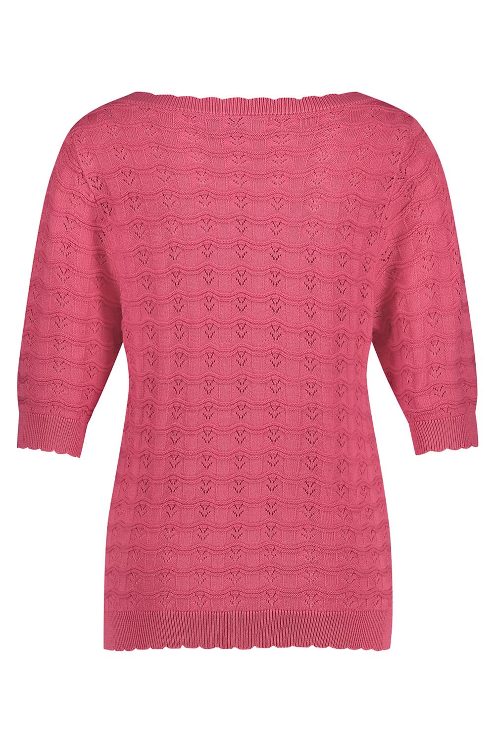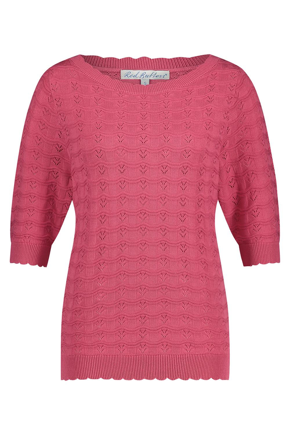 T shirt van Red Button met driekwart mouwen en een ronde hals. Dit model heeft een allover ajourpatroon.