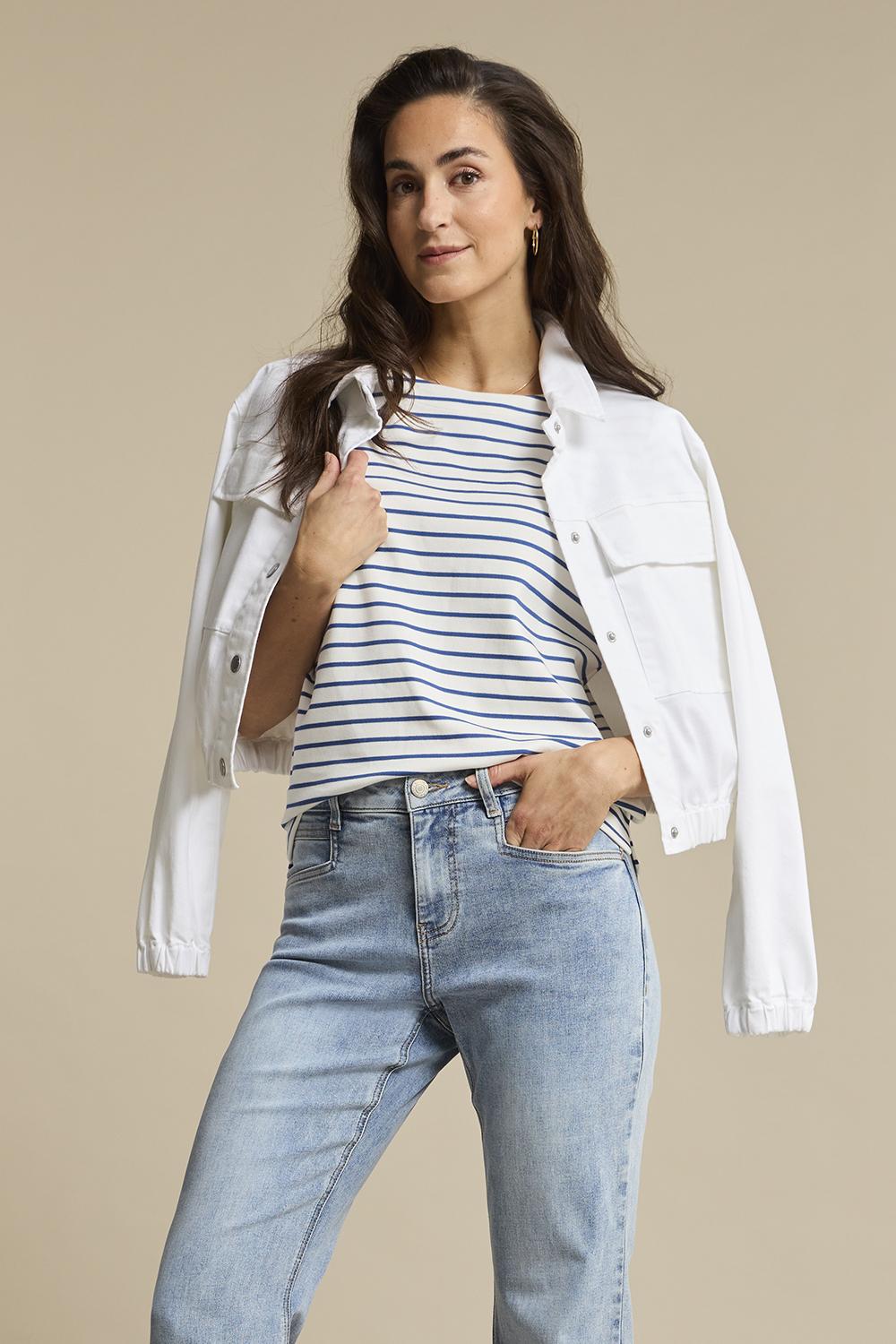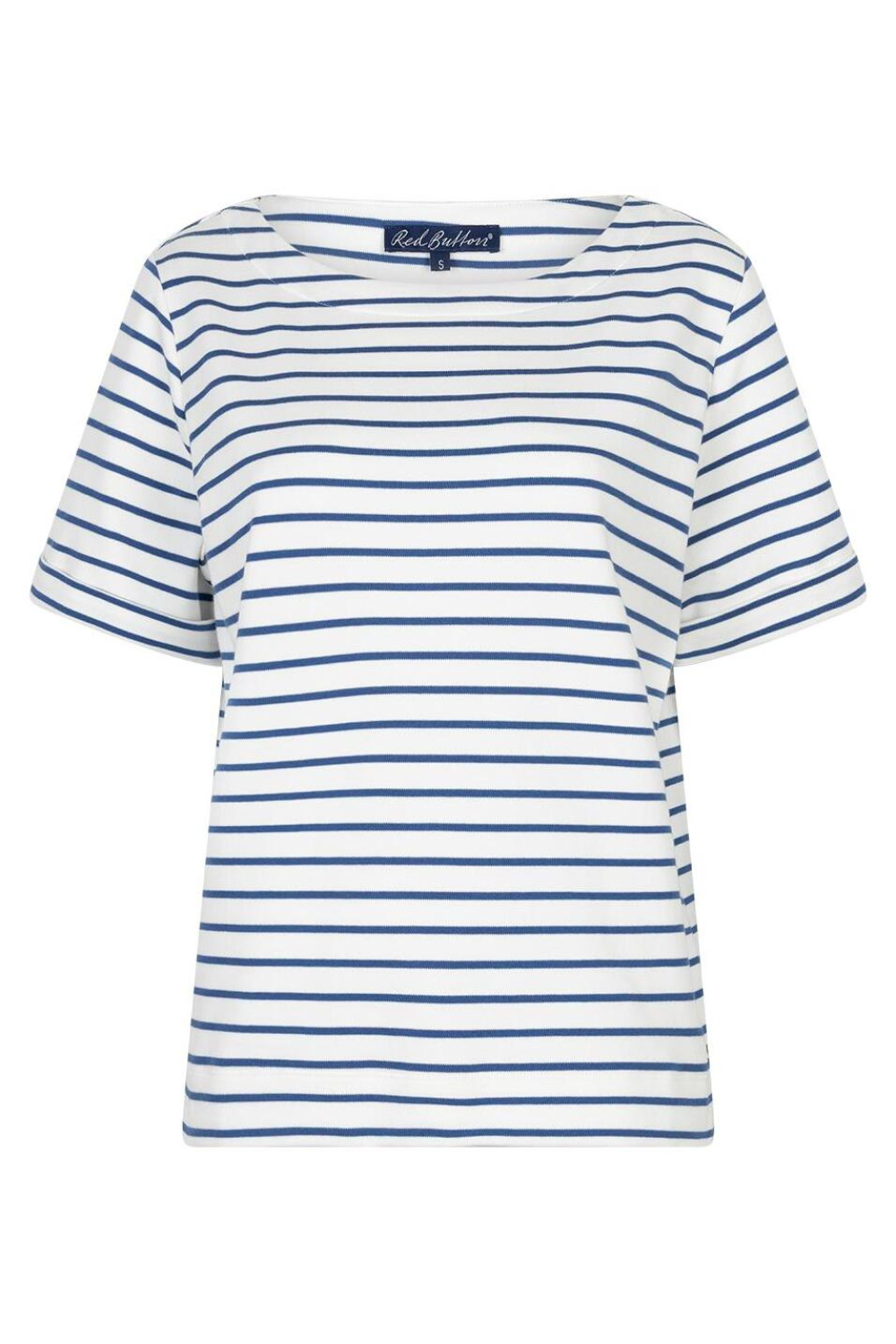 Dit casual T-shirt van Red Button in de kleur Jeans Blue is een veelzijdige aanvulling op jouw zomergarderobe. De speelse strepen waarin blauw met wit wordt afgewisseld geven een frisse uitstraling die perfect aansluit bij een zomerse dag. Met de regular fit en de ronde hals zit het T-shirt comfortabel en stijlvol. Gemaakt van een mix van 97% katoen en 3% elastan, biedt het de ideale combinatie van zachtheid en lichte stretch, waardoor het perfect is voor dagelijks gebruik. Dankzij de normale lengte en korte mouwen is dit T-shirt een ideale keuze voor informele gelegenheden. Het kan makkelijk gecombineerd worden met je favoriete jeans of een luchtige rok voor een ontspannen look. Of je nu een dagje in het park doorbrengt of een casual ontmoeting hebt met vrienden, met dit T-shirt weet je zeker dat je er goed uitziet. Met deze tijdloze stijl van Red Button voeg je een onmisbaar kledingstuk toe aan je zomergarderobe.
