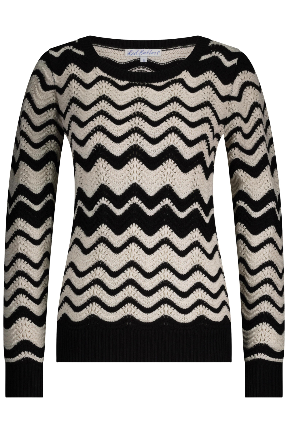 Deze stijlvolle trui van Red Button in de kleuren BLACK/ECRU mag niet ontbreken in jouw wintergarderobe. Gemaakt met een samenstelling van 60% katoen en 40% acryl, biedt deze trui een comfortabele en warme optie voor de koudere dagen. De regular fit zorgt voor een aangename pasvorm, terwijl de elegante ronde hals een tijdloze uitstraling geeft. Het opvallende structuurpatroon met zwart-witte zigzagstrepen voegt een speelse touch toe aan de klassieke knitwear stijl. De trui is perfect voor verschillende gelegenheden en is eenvoudig te combineren met zowel jeans als een nette rok. Of je nu een dag op kantoor hebt of een relaxte middag met vrienden doorbrengt, deze Red Button trui biedt een goede mix van comfort en stijl. De normale lengte en lange mouwen maken hem ideaal voor dagelijkse bezigheden tijdens de winter. Geniet van de veelzijdigheid en de subtiele flair die deze trui aan je outfit toevoegt.