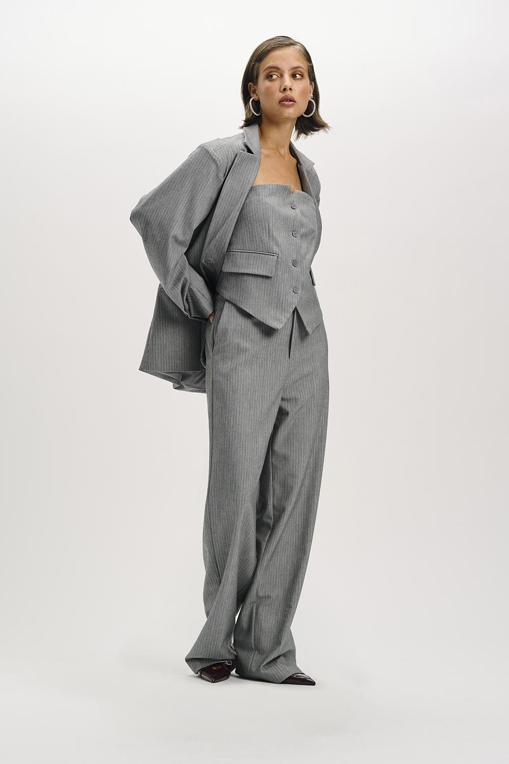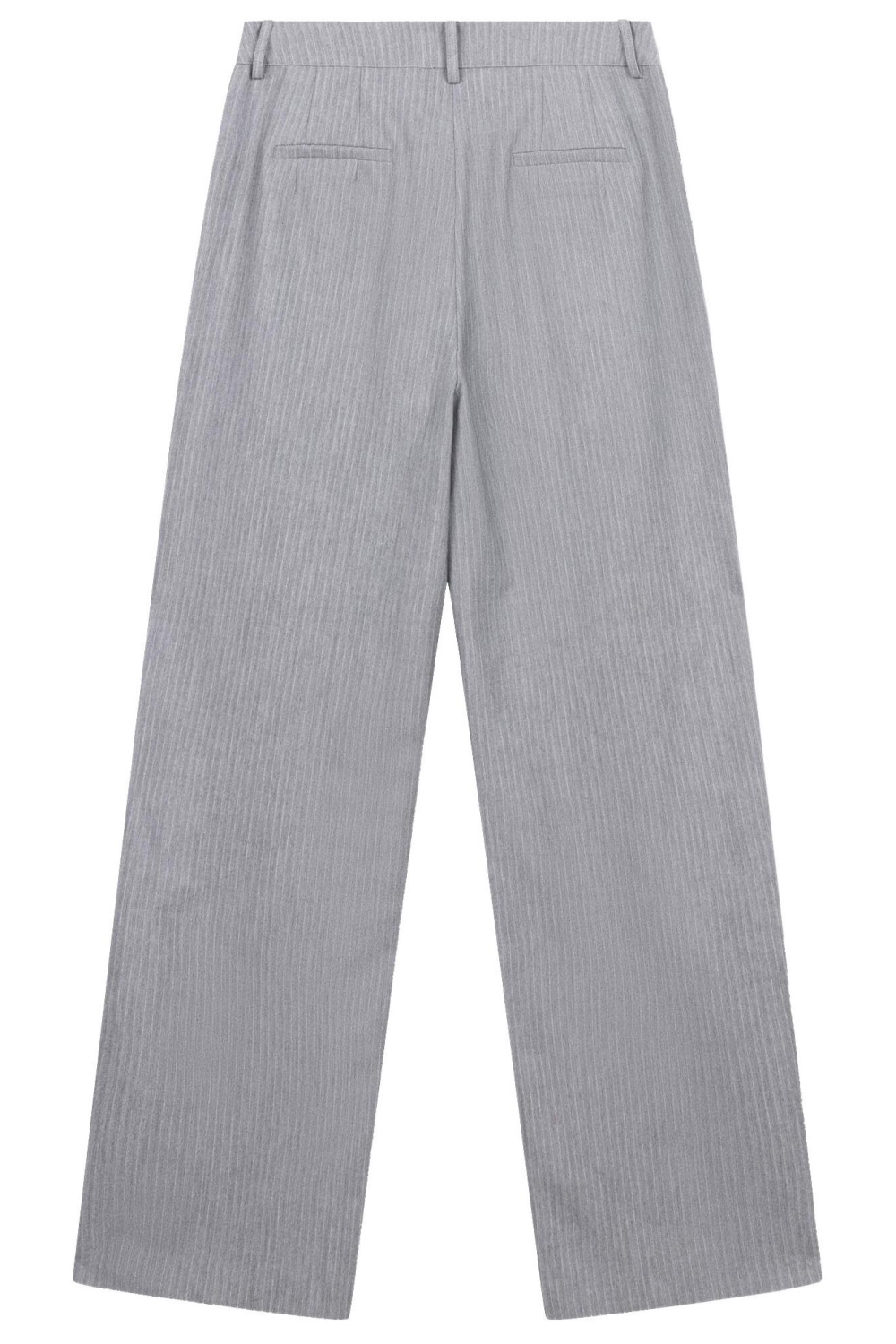 Deze elegante damesbroek van Refined Department voegt een stijlvolle touch toe aan jouw wintergarderobe. De broek is uitgevoerd in een verfijnde lichtgrijze kleur met een subtiel streepjespatroon, waardoor het een tijdloze charme uitstraalt. Dankzij de wide leg pasvorm biedt de broek een moderne en comfortabele look die ideaal is voor zowel een casual als een wat meer formele setting. Gemaakt van een hoogwaardige mix van polyester, viscose en elastan, voelt de stof zacht aan en geeft het een lichte stretch voor extra draagcomfort. Met steekzakken voor een nonchalante uitstraling en een klassieke knoop- en ritssluiting, is deze regular waist broek veelzijdig in zijn gebruik. Of je nu een dag op kantoor hebt gepland of een gezellige lunch met vrienden, deze broek past bij elke gelegenheid. Combineer hem met een nette blouse voor een zakelijke look of met een casual top voor een ontspannen dagje uit. De normale lengte maakt hem eenvoudig te combineren met diverse schoenstijlen, van hakken tot sneakers. Een stijlvolle keuze die je moeiteloos kunt integreren in je dagelijkse outfits.