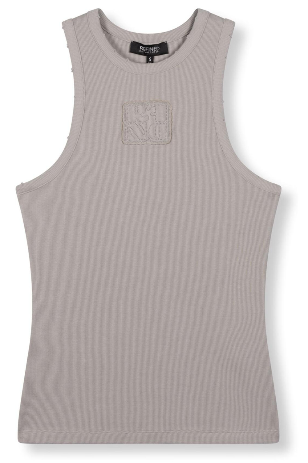 Deze stijlvolle grijze top van Refined Department is een veelzijdige aanvulling op je voorjaarsgarderobe. Gemaakt van een zachte mix van 95% katoen en 5% elastan, biedt deze mouwloze top een comfortabele slim fit die elegant om het lichaam valt. De subtiele ribstructuur geeft een verfijnde textuur, terwijl de ronde hals een klassieke en tijdloze uitstraling behoudt. De lichte grijstint maakt het eenvoudig te combineren met andere stijlen, van casual jeans tot een nette rok. Met zijn casual stijl is deze top perfect voor diverse gelegenheden. Of je nu een ontspannen dag in de stad plant of een informele bijeenkomst hebt, deze Refined Department top is een ideale keuze. Combineer hem met een licht vest voor koelere lentedagen, of draag hem solo voor een frisse, luchtige look. Dankzij het normale lengte ontwerp biedt de top niet alleen stijl, maar ook veelzijdigheid, waardoor hij een waardevolle toevoeging aan je dagelijkse outfits is.