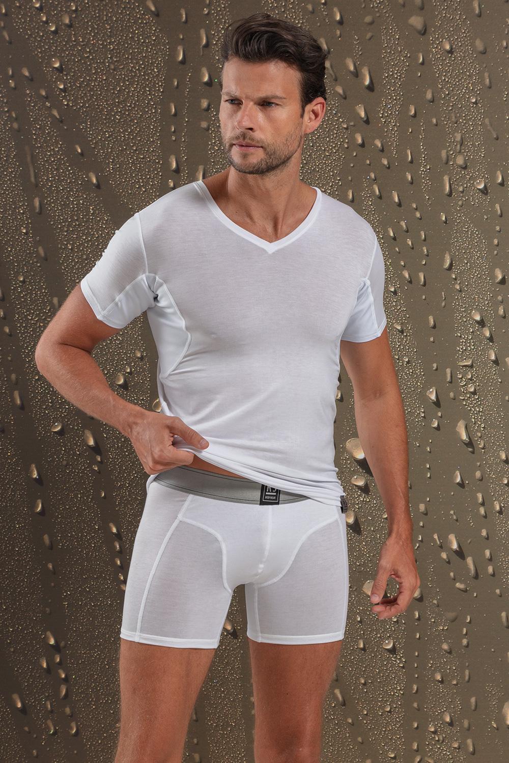 T-shirt met V-hals van RJ Bodywear. Dit model is gemaakt van een ideale basisstof Tencel lyocell gecombineerd met een beschermlaag die is ingenaaid als okselstuk. De beschermlaag is gemaakt van ScabeauTex. Dit zorgt er voor dat het vocht wordt geabsorbeerd en dat uw bovenkleding 100% zweetvrij blijft. De basisstof voelt zijdezacht aan en sluit goed aan op je lichaam. Bovendien is het okselstuk zo verwerkt dat je er totaal geen hinder van ondervind. Met dit T-shirt voel jij je gegarandeerd fris en zeker omdat je met dit shirt geen zorgen meer hoeft te maken om zweetplekken en zweetgeur.