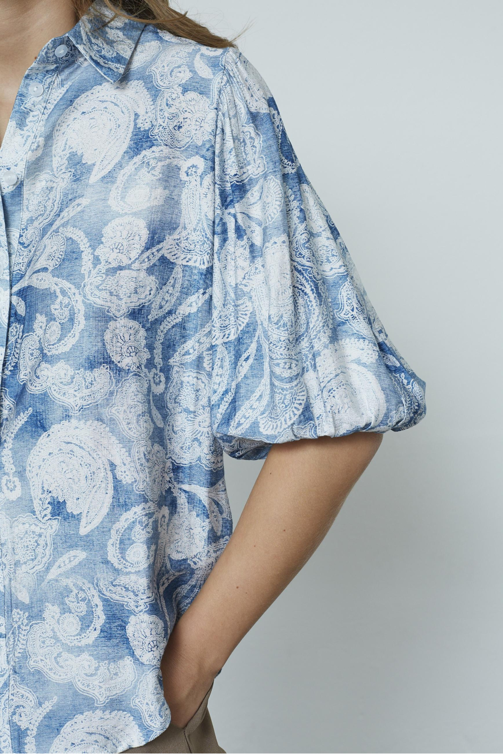 Deze casual blouse van SisterS point is een toonbeeld van zomerse elegantie. Gemaakt van 100% rayon, biedt deze blouse een lichte en ademende stof die ideaal is voor warme dagen. Met een verfijnd paisley-patroon in elegante blauw- en wittonen geeft de blouse je zomergarderobe een frisse uitstraling. De blouse heeft een relaxed regular fit, waardoor je een comfortabele draagervaring hebt. De 3/4-mouwen en klassieke kraag zorgen voor een tijdloze look die perfect is voor zowel alledaagse uitstapjes als informele bijeenkomsten. Dankzij de normale lengte en subtiele knoopsluiting is deze blouse makkelijk te combineren met een donkere jeans of een lichte pantalon. Het veelzijdige ontwerp maakt het een uitstekende keuze voor uiteenlopende gelegenheden, van een ontspannen lunch met vrienden tot een casual kantooroutfit. Deze SisterS point blouse combineert moeiteloos stijl en comfort, waardoor je hem keer op keer wilt dragen.