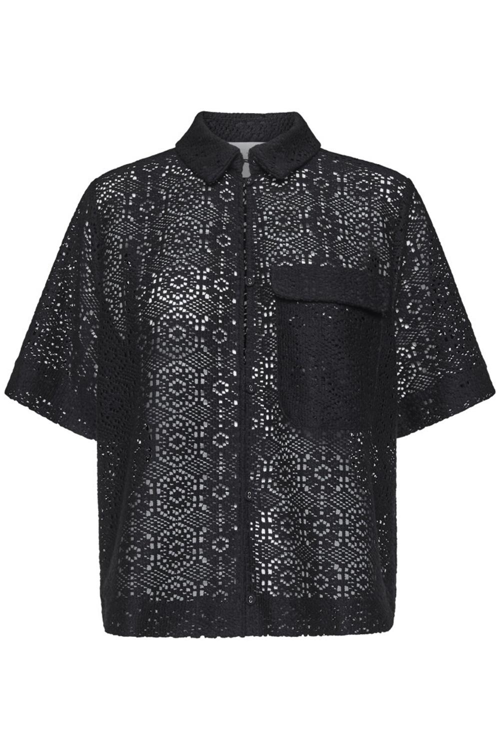 Deze zwarte blouse van SisterS Point is perfect voor zomerse dagen. De ajourpatroon geeft het een luchtige uitstraling, ideaal voor warm weer. Met een samenstelling van 65% polyester en 35% katoen, voelt de stof licht en comfortabel aan op je huid. De blouse heeft een regular fit en korte mouwen waardoor je je gemakkelijk kunt bewegen, of je nu een wandeling maakt of op een terras geniet. De blouse is gedetailleerd met stijlvolle klepzakken op de borst en een knoopsluiting, waardoor het een praktische keuze is voor diverse gelegenheden. Dankzij de puntkraag en het verfijnde ontwerp kun je deze blouse gemakkelijk combineren met zowel casual shorts voor een dagje uit als met een nette broek voor een avondje uit. Deze veelzijdige blouse is een tijdloze aanvulling op je zomergarderobe waarmee je stijlvol voor de dag komt.