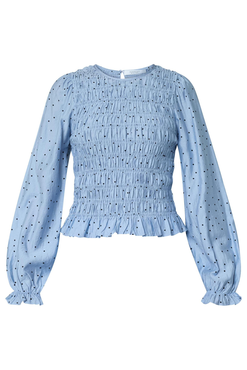 Deze blauwe blouse van SisterS point is een stijlvolle en casual toevoeging aan je garderobe. Met een regular pasvorm en lange mouwen biedt het je een comfortabele uitstraling die perfect is voor de lente. De ronde hals en knoopsluiting aan de achterkant geven de blouse een verfijnde afwerking, terwijl het gestructureerde patroon met subtiele stippen voor net dat beetje extra flair zorgt. Deze blouse is ideaal voor zowel een ontspannen dag als een nette lunchafspraak. Het luchtige materiaal en het getailleerde lichaamseffect maken deze SisterS point blouse erg veelzijdig. De normale lengte maakt het makkelijk om te combineren met een lichte pantalon of een casual jeans. Of je nu naar een informele bijeenkomst gaat of gewoon een dag op kantoor doorbrengt, dit kledingstuk biedt je de balans tussen stijl en gemak. De fijne details van de gesmokte stof en de subtiel geplooide randjes geven een speelse touch die jouw outfit echt compleet maakt.