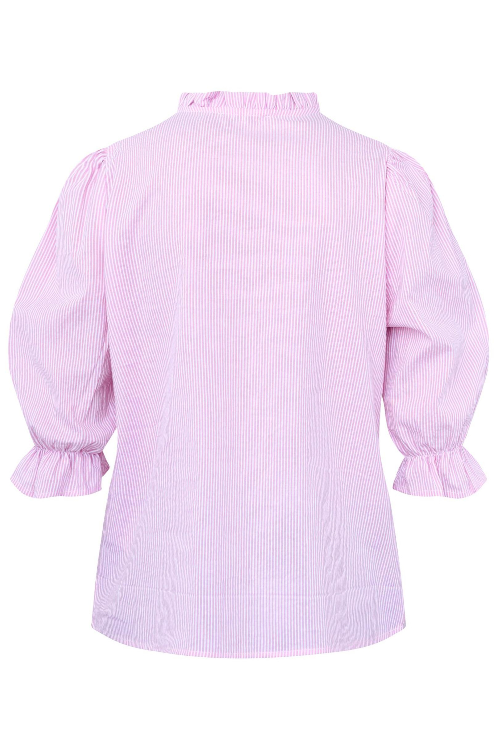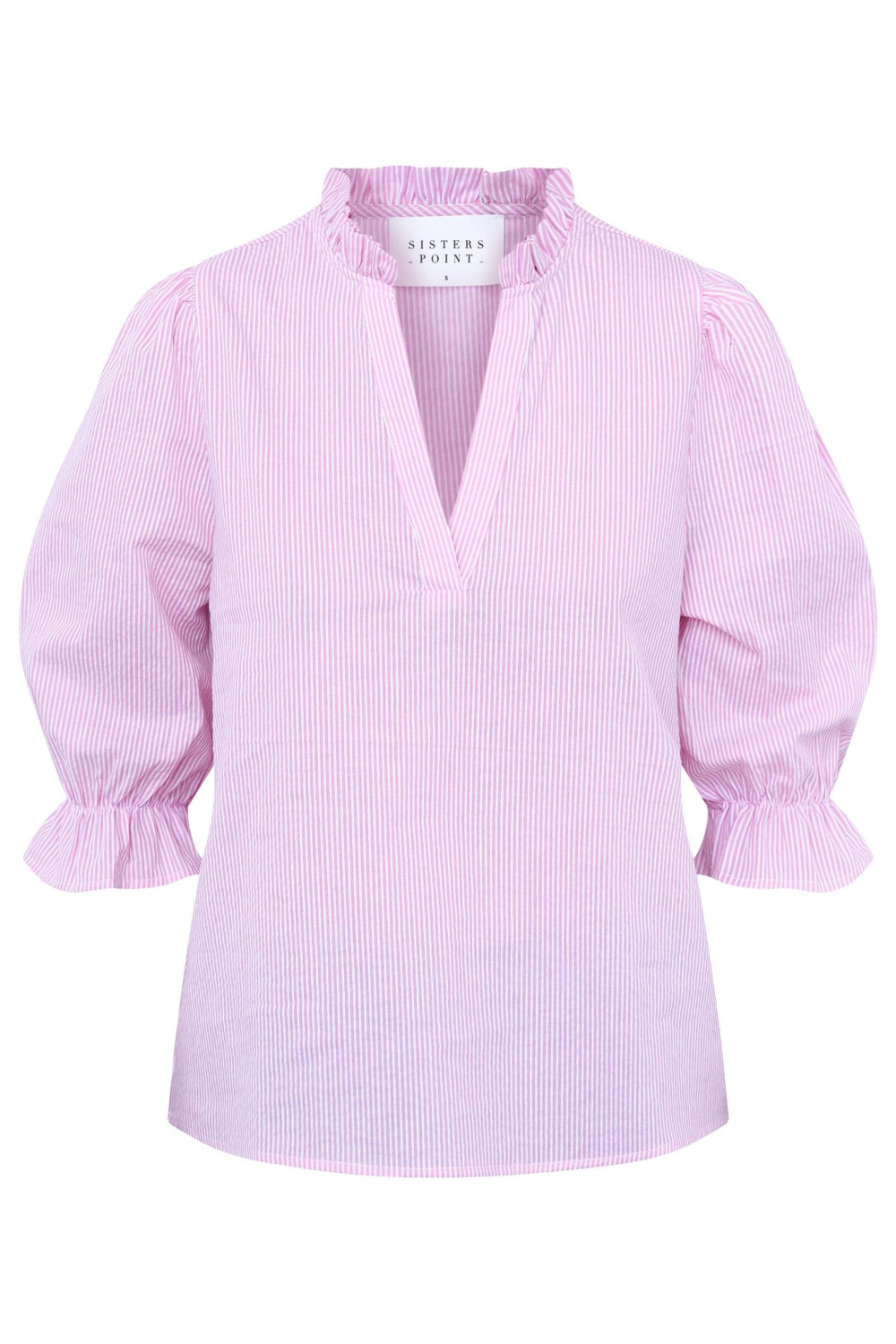 Deze charmante SisterS point blouse is een zomers genot voor je garderobe. De blouse valt op door de fijne roze strepen en de luchtige V-hals. Met een regular pasvorm en 3/4 mouwen met subtiele ruches, is hij een comfortabele keuze voor dagelijks gebruik. Dankzij het gebruik van 100% katoen, voelt de stof natuurlijk en ademend aan, ideaal voor warmere dagen. De stijlvolle details maken deze blouse veelzijdig inzetbaar. Draag hem casual met een jeans voor een ontspannen brunch of combineer hem met een rok voor een meer geklede look. Met zijn zomerse uitstraling en comfortabele lengte, is hij perfect voor een dag op kantoor of een avond op het terras. De SisterS point blouse biedt de perfecte balans tussen stijl en draagcomfort.