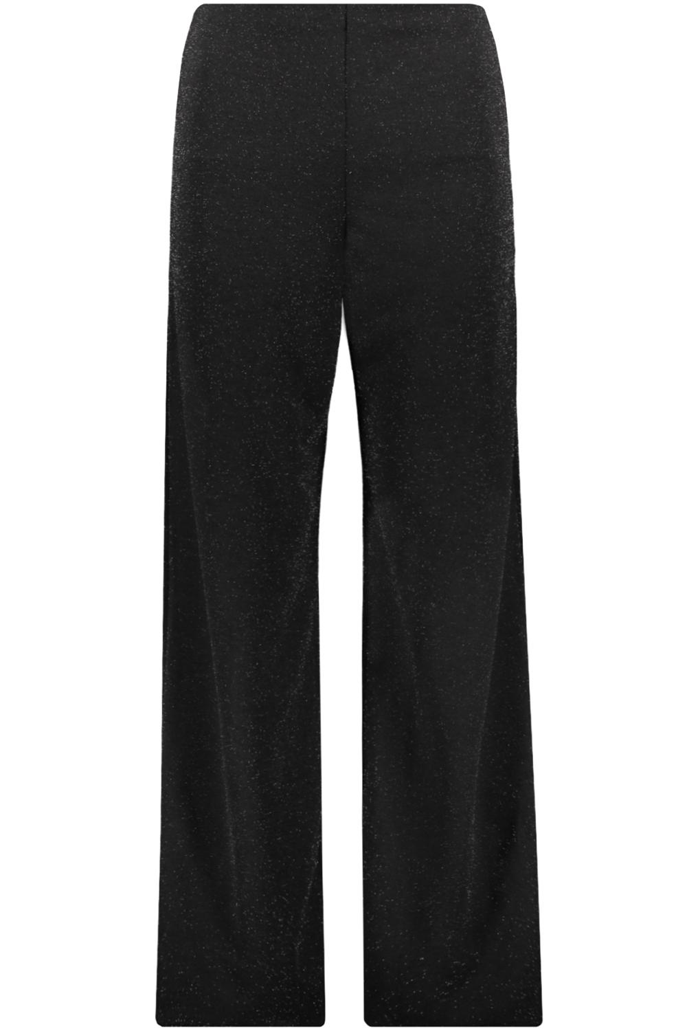 Wideleg broek met allover glitter patroon. Dit model heeft een hoge elastische boord.