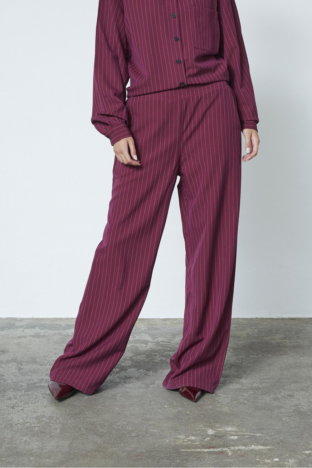 Deze stijlvolle wijnrode broek van SisterS Point is een prachtige aanvulling op je herfstgarderobe. Met zijn unieke streeppatroon en wide leg pasvorm straalt deze broek een casual en modieuze look uit. Gemaakt van een aangename mix van polyester, viscose en elastan, biedt deze broek het optimale comfort en een prettige bewegingsvrijheid. De elastische tailleband zorgt voor een ontspannen draagervaring terwijl de regular waist bijdraagt aan de veelzijdigheid van het kledingstuk. De klassieke steekzakken voegen een praktisch element toe aan deze modieuze broek, waardoor je gemakkelijk kleine essentials kunt meenemen. Dankzij de normale lengte is deze broek perfect te combineren met zowel sneakers als hakken, afhankelijk van de gelegenheid. Of je nu een casual dag op kantoor hebt of een avondje uit plant, deze SisterS Point broek is een veelzijdige keuze die zich moeiteloos aanpast aan elke setting. Draag hem met een eenvoudige top voor een nonchalante uitstraling of combineer hem met een elegante blouse voor een chique look.