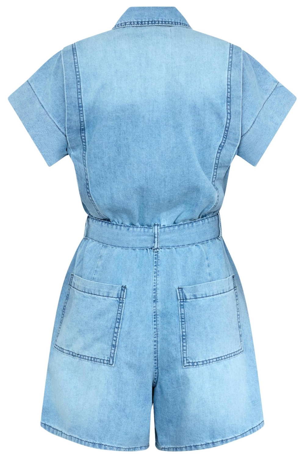 Deze stijlvolle denim jumpsuit van SisterS point is een veelzijdige toevoeging aan je zomercollectie. De stonewash afwerking en de 5-pocket stijl geven deze jumpsuit een tijdloze look. Gemaakt van 85% katoen en 15% polyester, biedt de jumpsuit een comfortabele en luchtige pasvorm. De korte mouwen en de puntkraag geven een casual en toch verfijnde uitstraling die perfect bij zonnige dagen past. Dankzij de regular fit en de knoopsluiting is de jumpsuit eenvoudig te dragen en accentueert het je figuur op subtiele wijze. Ideaal voor een dagje in de stad of een ontspannen strandwandeling, deze denim jumpsuit kan gemakkelijk worden gecombineerd met een paar zomerse sandalen of stoere laarzen. Of je nu kiest voor een ontspannen of een modieuze aanpak, deze jumpsuit van SisterS point biedt altijd een stijlvol comfort.
