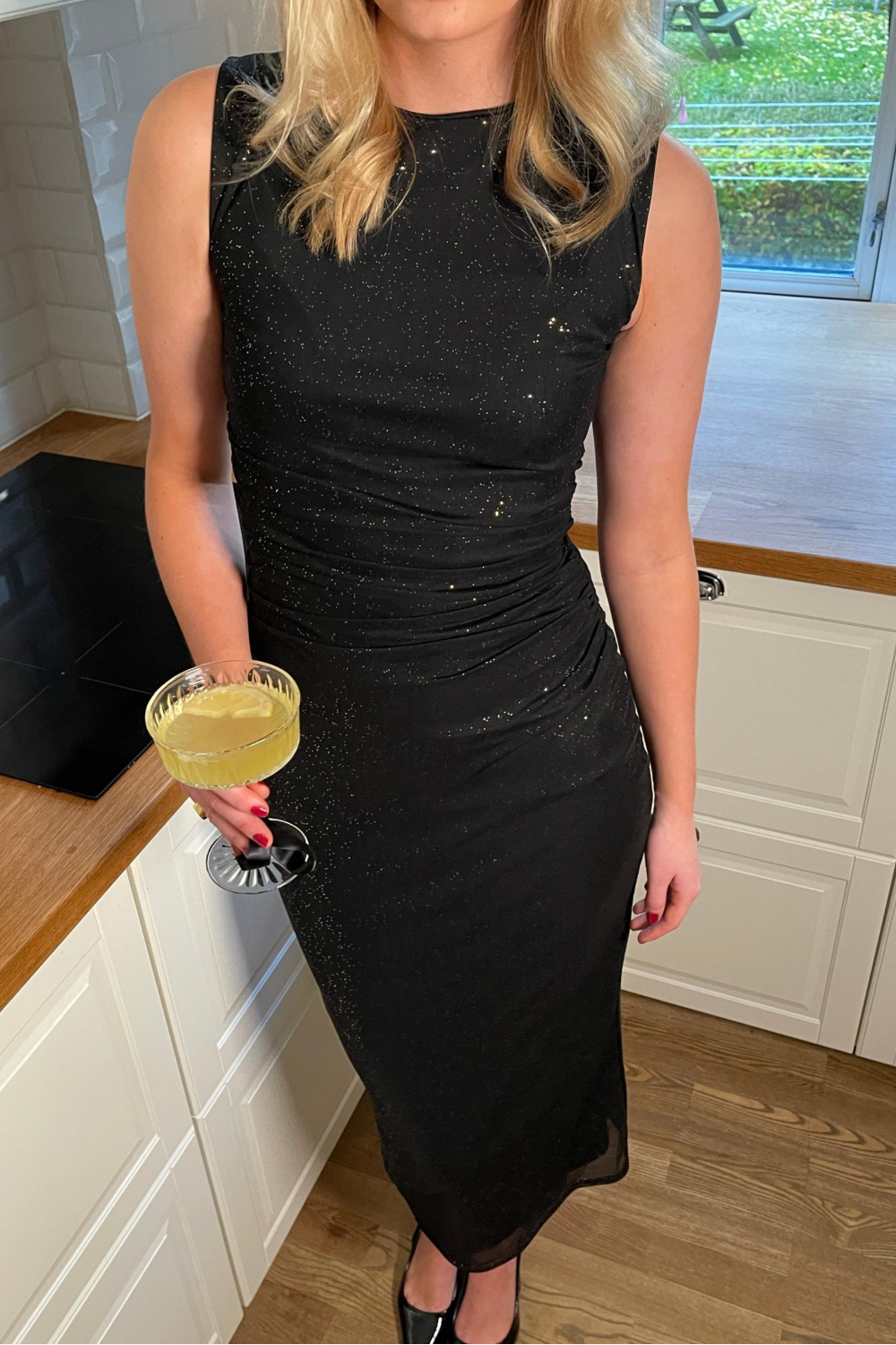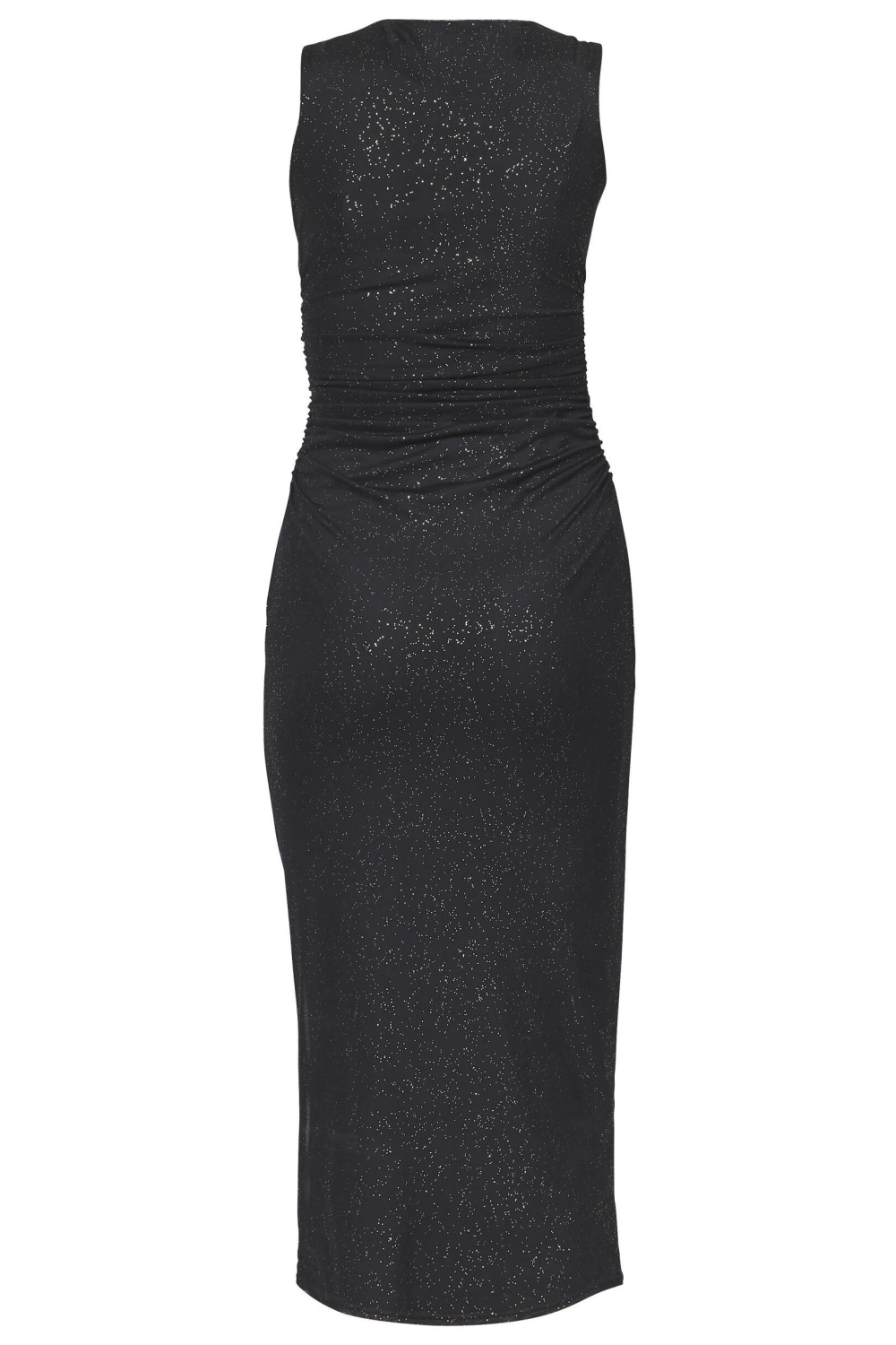 Deze lange, mouwloze jurk van SisterS point is een opvallende keuze voor je volgende feestje. De jurk heeft een elegante slim fit die je figuur prachtig accentueert. Het materiaal van 95% polyester en 5% elastaan zorgt voor een comfortabele fit die je de hele avond met plezier draagt. De zwarte stof is voorzien van subtiele gouden glitters, wat de jurk een luxe uitstraling geeft. Met een ronde halslijn en een ingebouwde polyester voering is deze jurk zowel stijlvol als praktisch in de wintermaanden. Dankzij het tijdloze ontwerp en de glinsterende details is deze black/gold jurk perfect voor feestelijke gelegenheden en winterse events. Je kunt hem makkelijk combineren met eenvoudige accessoires om de glitterpunten extra op te laten vallen. Of je er nu voor kiest om hem te dragen naar een chique diner of een sprankelend feest, met deze jurk steel je gegarandeerd de show. De nauwsluitende pasvorm en de elegante lengte maken dit een veelzijdige aanvulling op je garderobe, ideaal wanneer je zin hebt om te stralen. Meer informatie: De totale lengte is 133 cm bij maat S. We raden aan dit artikel een maat groter te bestellen dan dat je gewend bent.