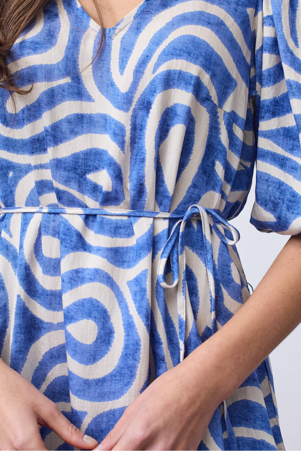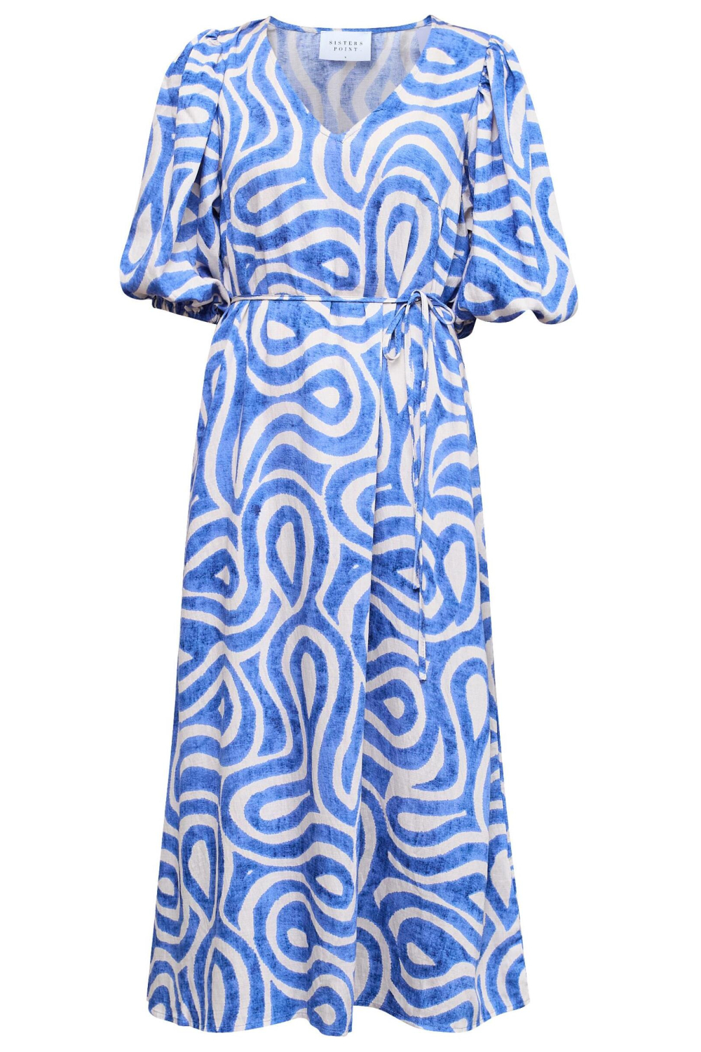 Deze zomerse jurk van SisterS Point valt op door het prachtige grafische patroon in de kleur BLUE ETHNIC. De regular pasvorm en 7/8 lengte geven de jurk een elegante uitstraling zonder in te boeten op comfort. De V-hals en de korte mouwen zorgen voor een luchtig gevoel, ideaal voor de warme zomerdagen. Met een materiaal van 83% viscose en 17% polyamide biedt de jurk een zachte en lichte touch die prettig aanvoelt op de huid. De jurk is perfect voor casual gelegenheden, zoals een ontspannen dagje uit of een bezoek aan het strand. Dankzij het opvallende patroon en de flatterende snit is het eenvoudig te combineren met zowel sneakers als hakken. Of je nu een wandeling door de stad maakt of geniet van een zomerse picknick, deze jurk van SisterS Point is een veelzijdige keuze die je look moeiteloos naar een hoger niveau tilt. Meer informatie: De totale lengte is 120 cm bij maat S.