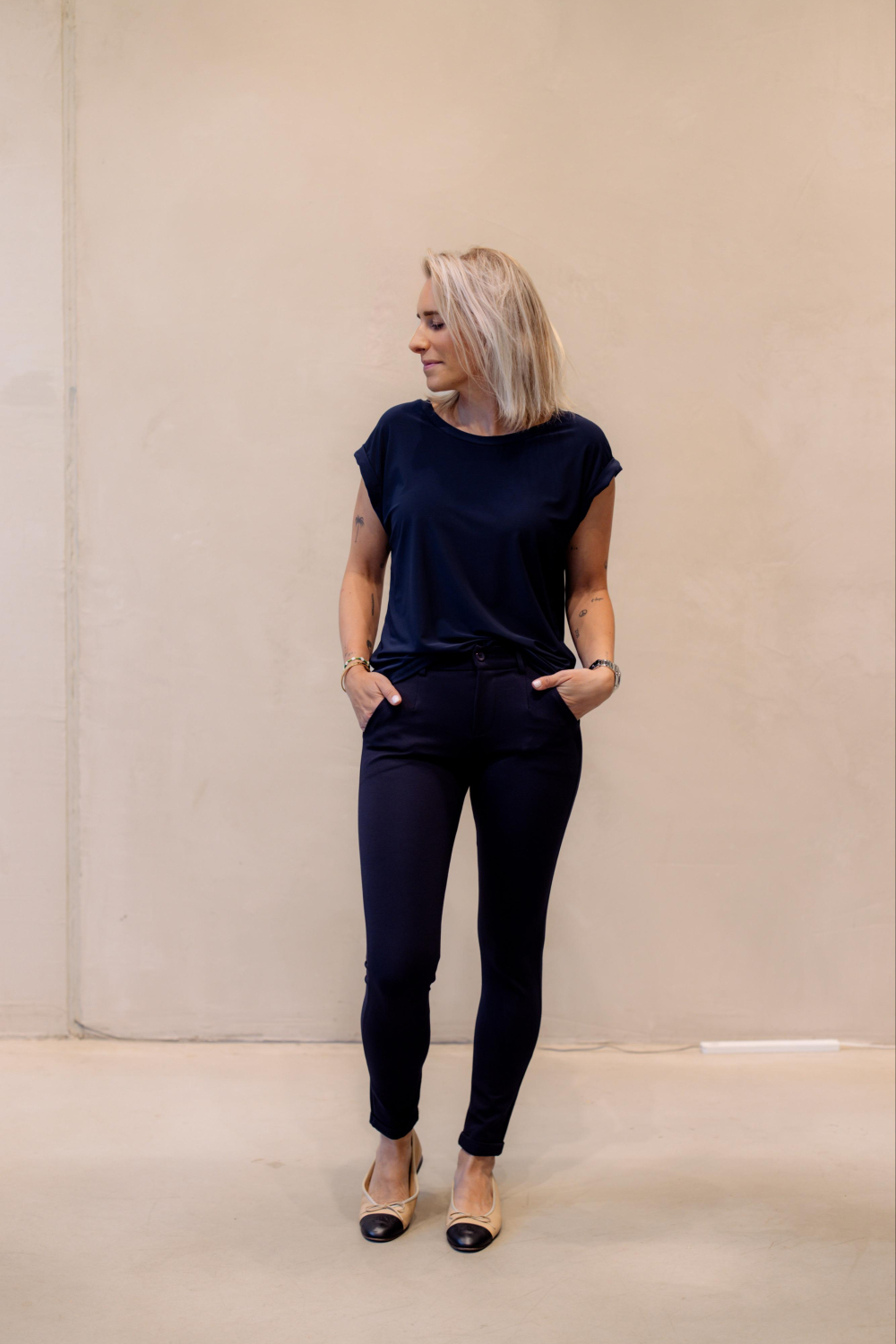 Sisters Point basis T-shirt met kapmouwen. Het T-shirt is lekker comfortabel en heeft een ronde hals.