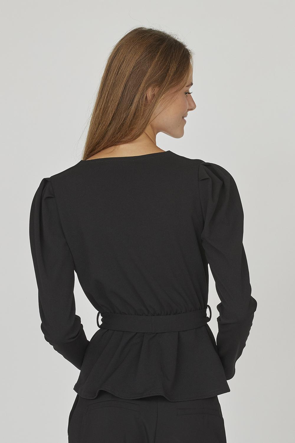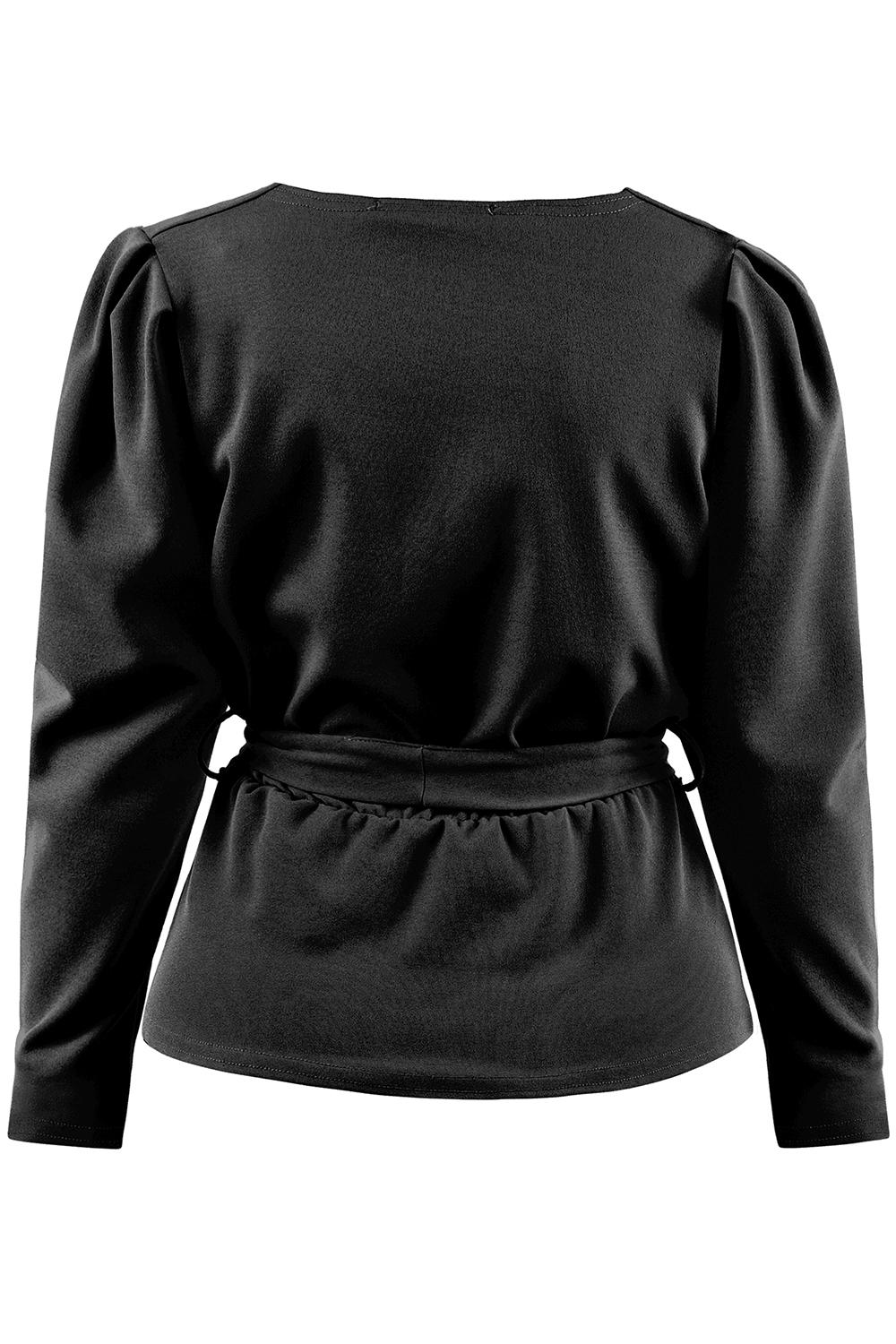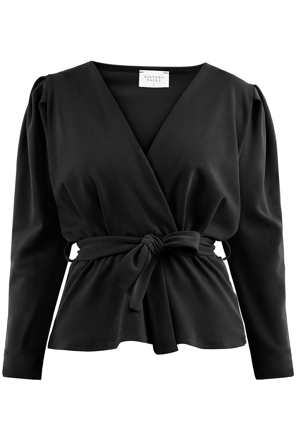 Deze elegante zwarte blouse van SisterS point is een tijdloze toevoeging aan je garderobe. Dankzij de regular pasvorm en stretchy stof is de blouse comfortabel en veelzijdig. De overslaghalslijn geeft een speelse touch aan de klassieke look, terwijl de tailleband voor een mooi silhouet zorgt. De lange mouwen maken het een perfecte keuze voor zowel koelere als warmere dagen. Met zijn strakke ontwerp is deze blouse ideaal voor zowel casual als zakelijke gelegenheden. Je kunt hem combineren met een strakke rok voor een professionele uitstraling of met een jeans voor een ontspannen look. De subtiele plooien op de schouders voegen een element van zachtheid en stijl toe. Of je nu een dag op kantoor hebt of een avondje uit plant, deze blouse biedt de perfecte balans tussen comfort en elegantie.