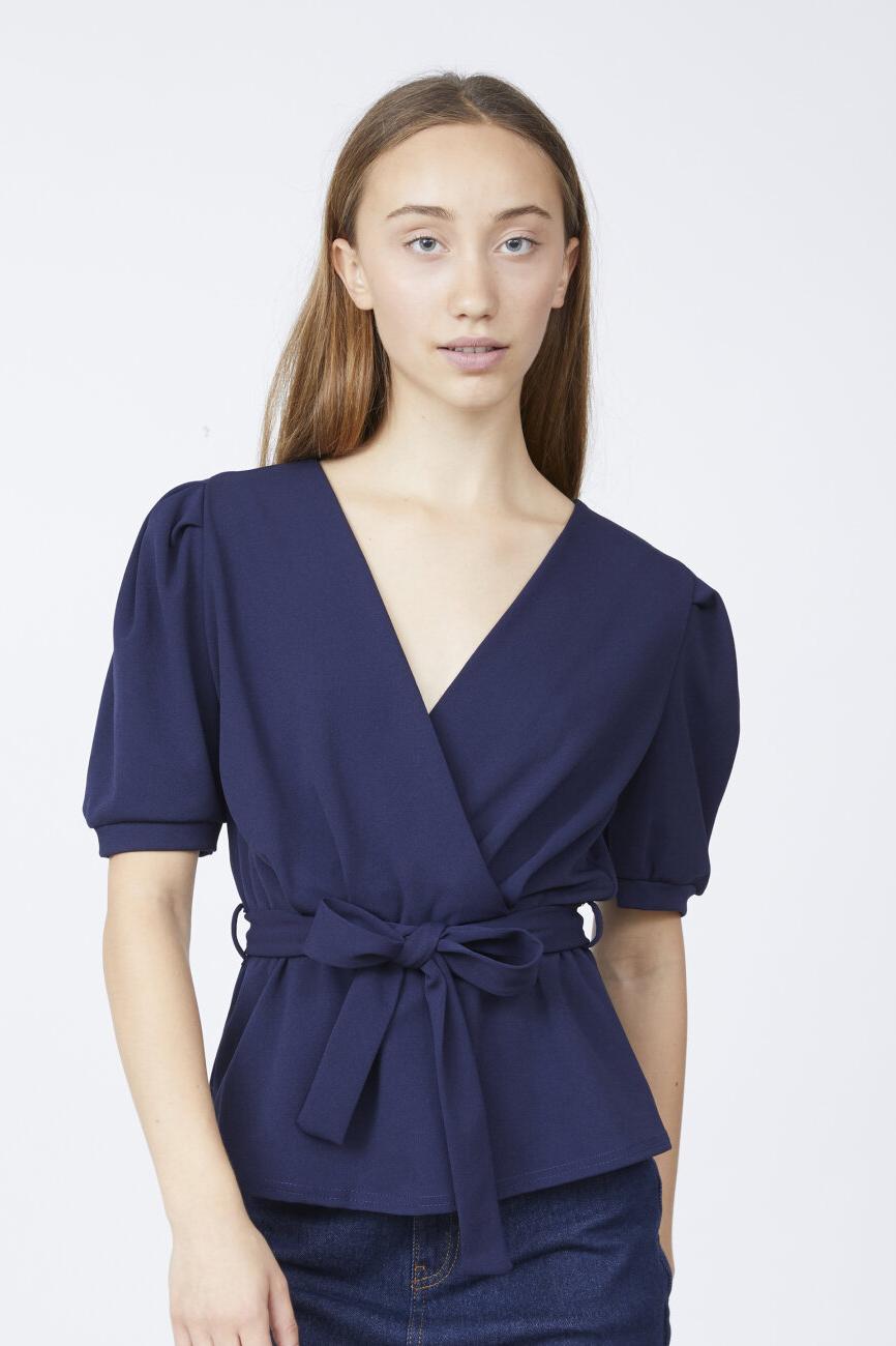 Deze navy blouse van SisterS point is een elegante keuze voor je dagelijkse outfits. Het ontwerp valt op door de overslaghals en de korte mouwen die een verfijnde uitstraling geven. Deze regular fit blouse is gemaakt van een comfortabele mix van 95% polyester en 5% elastan, wat zorgt voor een zachte en soepele pasvorm. De tailleband met strikdetail benadrukt je figuur op een subtiele manier en voegt een speels element toe aan de blouse. De subtiele plooien op de schouders geven de blouse een extra dimensie, waardoor je een unieke look krijgt. Deze blouse is ideaal voor zowel casual als semi-formele gelegenheden. Combineer het met een spijkerbroek voor een ontspannen dagje uit of draag het boven een nette broek voor een meer gepolijste uitstraling. Door het tijdloze design en de veelzijdigheid past deze blouse perfect in elke garderobe.