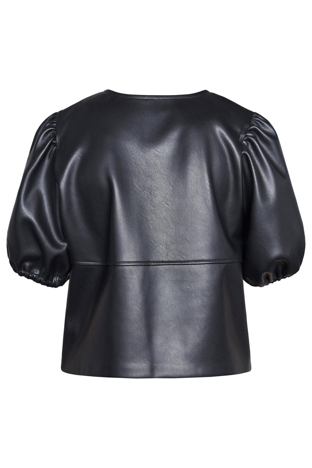 Dit stijlvolle zwarte t shirt van SisterS point is een opvallende toevoeging aan je wintergarderobe. Met een moderne regular pasvorm biedt het imitatieleer niet alleen duurzaamheid, maar ook een trendy uitstraling. Het t shirt heeft een ronde hals en korte mouwen met een lichte pof, wat een speelse touch geeft aan het geheel. Het strikkoord aan de voorzijde zorgt voor een unieke sluiting, perfect voor een casual look met een vleugje elegantie. Gemaakt van 100% PU, is deze top ideaal voor verschillende gelegenheden, van een avondje uit tot een informele afspraak. Je kunt het eenvoudig combineren met een strakke jeans of een rok voor een veelzijdige outfit. Het unieke design en de hoogwaardige afwerking maken het een echte blikvanger in elke garderobe. Of je nu een opvallend statement wilt maken of gewoon wilt genieten van een comfortabele en stijlvolle look, dit model biedt het allemaal.