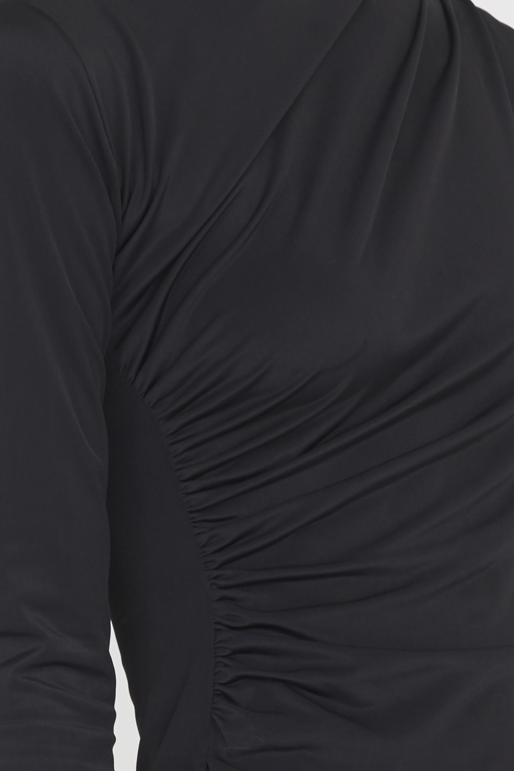 Dit stijlvolle zwarte dames T-shirt van SisterS Point past perfect bij een casual wintergarderobe. Het shirt heeft een elegante ronde hals en een subtiele plooidetail aan de zijkant, wat een gedetailleerde touch toevoegt aan de moderne slim fit pasvorm. Gemaakt van 88% polyester en 12% elastan, biedt het een comfortabele stretch en ademende kwaliteit. Dit maakt het T-shirt ideaal voor dagelijks gebruik, van een ontspannen dag thuis tot een informele ontmoeting met vrienden. Met zijn veelzijdige design is dit T-shirt gemakkelijk te combineren met diverse kledingstukken in je kast. Door de lange mouwen en de normale lengte past het goed bij zowel een nette broek als een casual jeans. De neutrale zwarte kleur maakt het eenvoudig om te dragen onder een jasje voor een gelaagde look. Of je nu onderweg bent naar een ontspannen lunch of een avondwandeling in de stad plant, dit T-shirt biedt juist die balans tussen comfort en stijl.