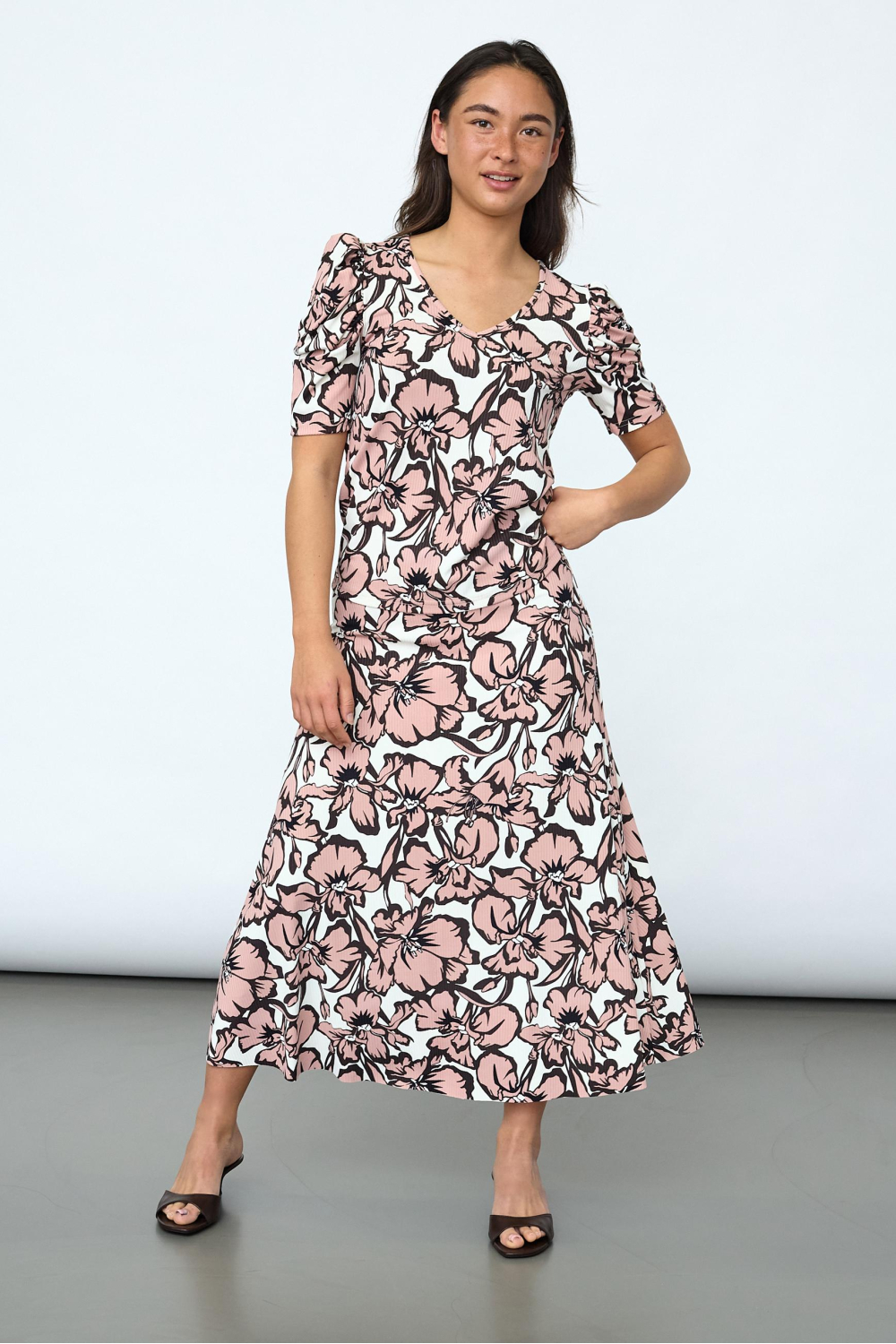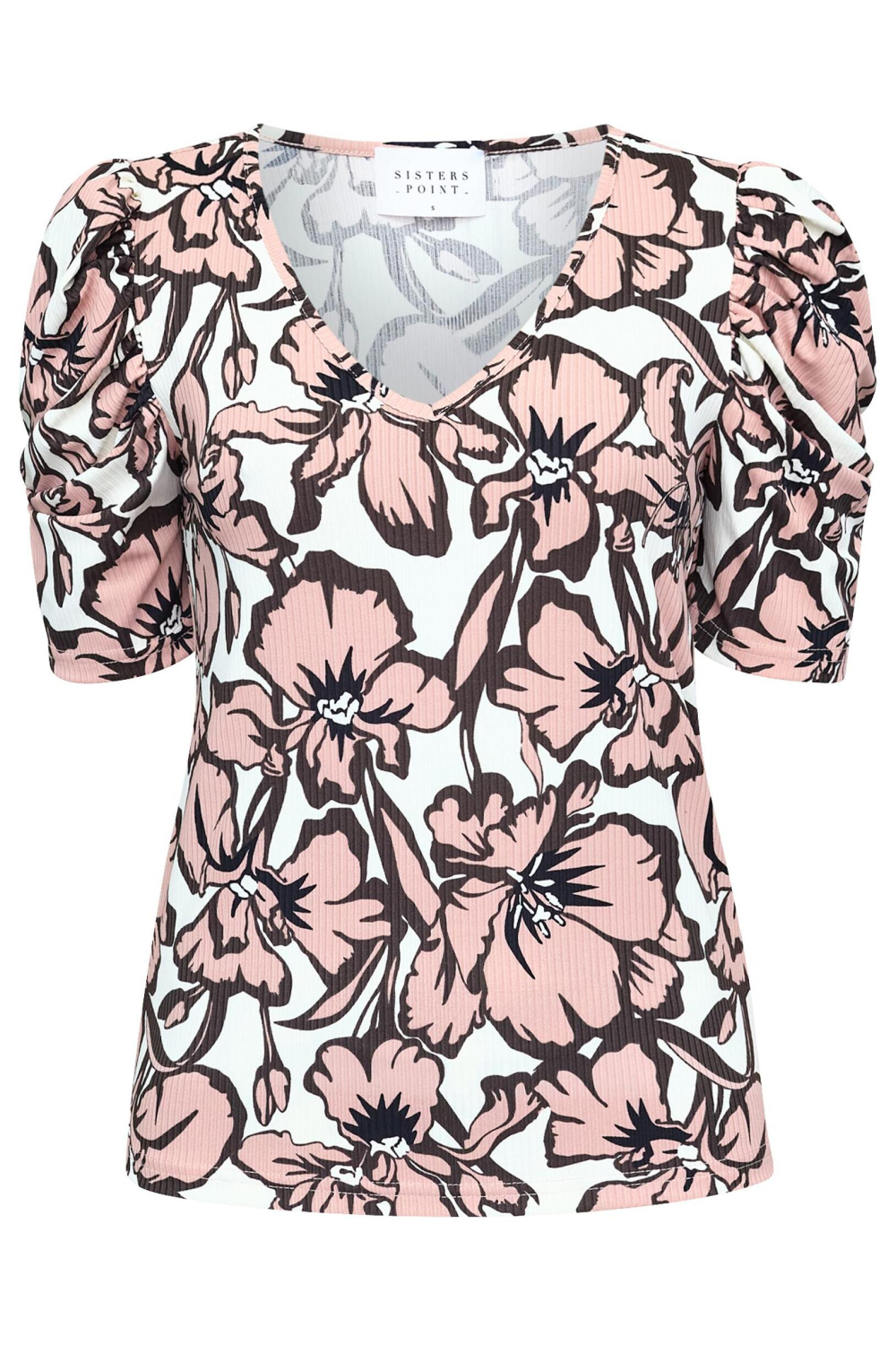 Dit grafische T-shirt van SisterS point is een veelzijdige keuze voor je zomergarderobe. Met zijn opvallende bloemenpatroon en luchtige materiaal van 95% polyester en 5% elastaan, biedt het T-shirt niet alleen visuele aantrekkingskracht maar ook een comfortabele draagervaring. De speelse pofmouwen en de elegante V-hals voegen een uniek detail toe, waardoor het T-shirt perfect is voor zowel informele als iets formelere gelegenheden. De normale lengte en regular fit pasvorm zorgen ervoor dat het gemakkelijk te combineren is met andere kledingstukken, van jeans tot rokken. Of je nu een dagje naar het strand gaat of een avondje uit gepland hebt, dit SisterS point T-shirt voegt een vleugje stijl toe aan elke outfit. Het mengsel van kleuren en het grafische ontwerp maken het een uitstekende keuze voor iedereen die graag wat flair aan hun dagelijks leven toevoegt. Draag het met een lichte broek voor een frisse zomerse look of kies voor een donkere jeans voor een meer contrastvolle styling. Dankzij de korte mouwen blijft het een koele en comfortabele optie op warme dagen.