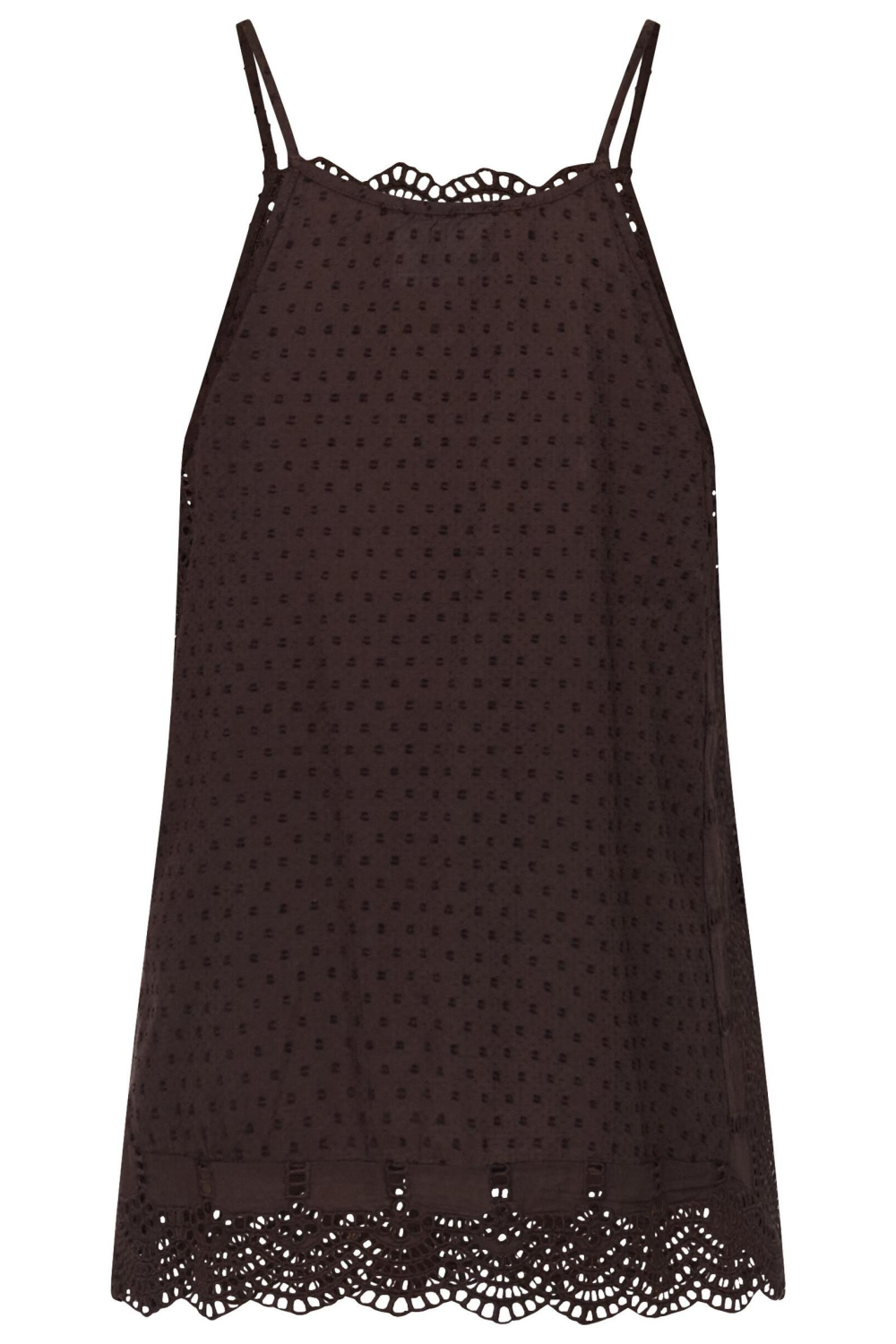 De SisterS point top in de kleur D. CHOCOLATE is de perfecte aanvulling voor je zomergarderobe. Gemaakt van 100% katoen, biedt deze top een luchtige en comfortabele pasvorm die ideaal is voor warme dagen. Met een regular fit en spaghettibandjes behoud je in elk opzicht een casual en moeiteloze uitstraling. Het vierkante halsdesign geeft het geheel een moderne touch, terwijl het ajourpatroon voor een subtiele elegantie zorgt. De normale lengte van de top maakt het een veelzijdig kledingstuk dat je gemakkelijk kunt combineren. De SisterS point top is geschikt voor diverse informele gelegenheden, van een dagje strand tot een zomerse barbecue. De verfijnde rand en speelse details langs de zoom dragen bij aan een stijlvolle look, welke je eenvoudig kan combineren met een lichte jeans of korte broek. Dankzij het veelzijdige design en de kwaliteit van de stof, kun je deze top keer op keer dragen zonder dat het verveelt. Voeg een accessoire toe voor een persoonlijke touch, en je bent klaar om te gaan.