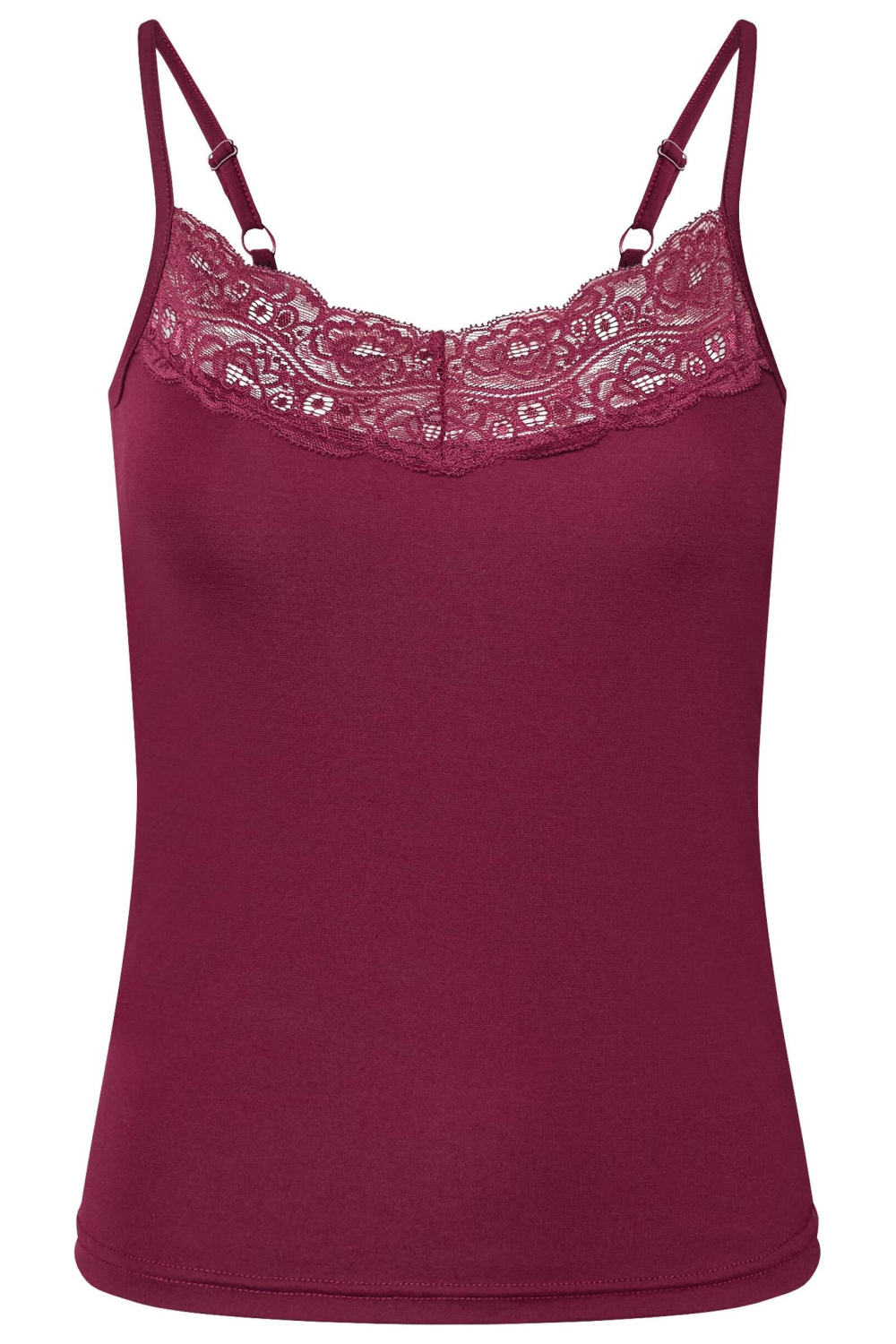 Deze stijlvolle top van SisterS Point in D. Bordeaux is een comfortabele aanvulling op je garderobe. De V-hals gecombineerd met het sierlijke kanten patroon geeft deze top een verfijnde uitstraling. Gemaakt van een mix van viscose, polyamide en elastan, voelt de stof zacht aan op de huid en biedt het een lichte stretch voor extra comfort. Met de subtiele spaghettibandjes en de normale lengte van de top, is het een perfecte keuze voor casual gelegenheden. De SisterS Point top is ideaal voor de winter en kan veelzijdig gecombineerd worden. Draag het met een jeans voor een relaxte, dagelijkse look, of combineer het met een blazer voor een iets formelere setting. De rijke bordeauxkleur zorgt ervoor dat je deze top gemakkelijk kunt mixen met andere kleuren en stijlen. Met deze top geniet je van zowel comfort als stijl op elk moment van de dag.