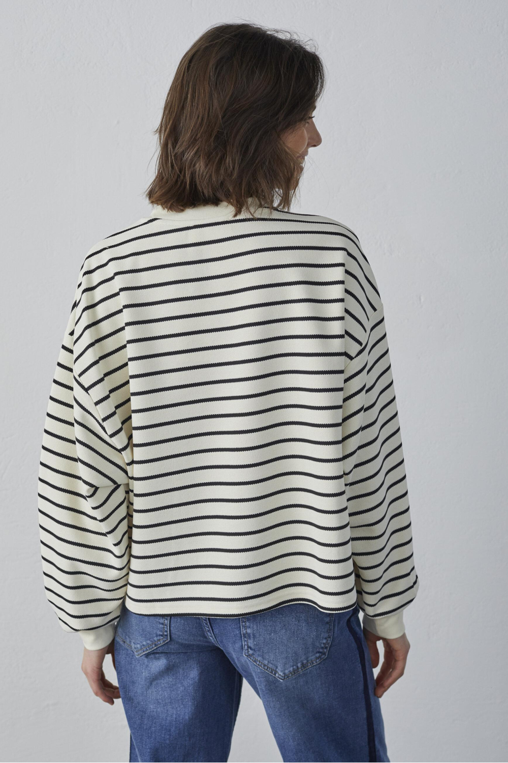 Deze casual trui van SisterS point is een veelzijdige toevoeging aan jouw najaarsgarderobe. Het heeft een opvallend streepjespatroon in de kleuren cream en zwart, wat zorgt voor een tijdloze en moderne look. De oversized pasvorm en het zachte polyester materiaal maken het een comfortabele keuze voor dagelijks gebruik. De ronde hals en lange mouwen bieden voldoende warmte en maken het perfect voor koelere dagen. Dankzij het normale lengteontwerp combineer je de trui moeiteloos met je favoriete jeans voor een relaxte, alledaagse stijling. Of je nu een dagje in de stad bent of lekker thuis ontspant, deze trui houdt je stijlvol en comfortabel. Ideaal voor een casual setting waarbij je er toch verzorgd uit wilt zien. Met deze trui ben je klaar voor elke gelegenheid waarbij comfort en stijl belangrijk zijn.