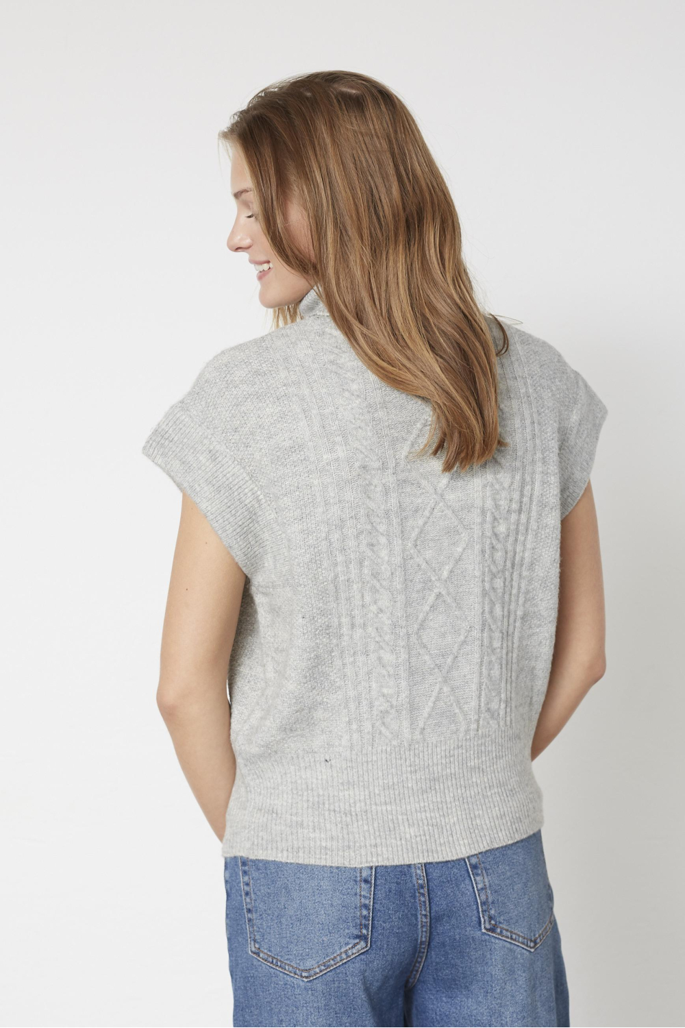 Deze grijze kabeltrui van SisterS Point brengt comfort en stijl samen, speciaal ontworpen voor het winterseizoen. Met een regular fit pasvorm biedt deze trui voldoende bewegingsvrijheid en blijft hij de hele dag prettig zitten. De stijlvolle colkraag zorgt voor extra warmte en een verfijnde uitstraling, terwijl de kap mouw een modern accent toevoegt. Het kabelpatroon voegt een subtiele textuur toe, ideaal voor diverse gelegenheden. Deze knitwear trui in de kleur GREY MEL past perfect bij een casual of meer formele look. Combineer hem met een spijkerbroek voor een ontspannen dagje uit of draag hem boven een rok voor een meer geklede stijl. De normale lengte maakt het eenvoudig om de trui in verschillende outfits te integreren. Of je nu een dag op kantoor doorbrengt of een middagje de stad in gaat, deze trui biedt je de veelzijdigheid die je nodig hebt.