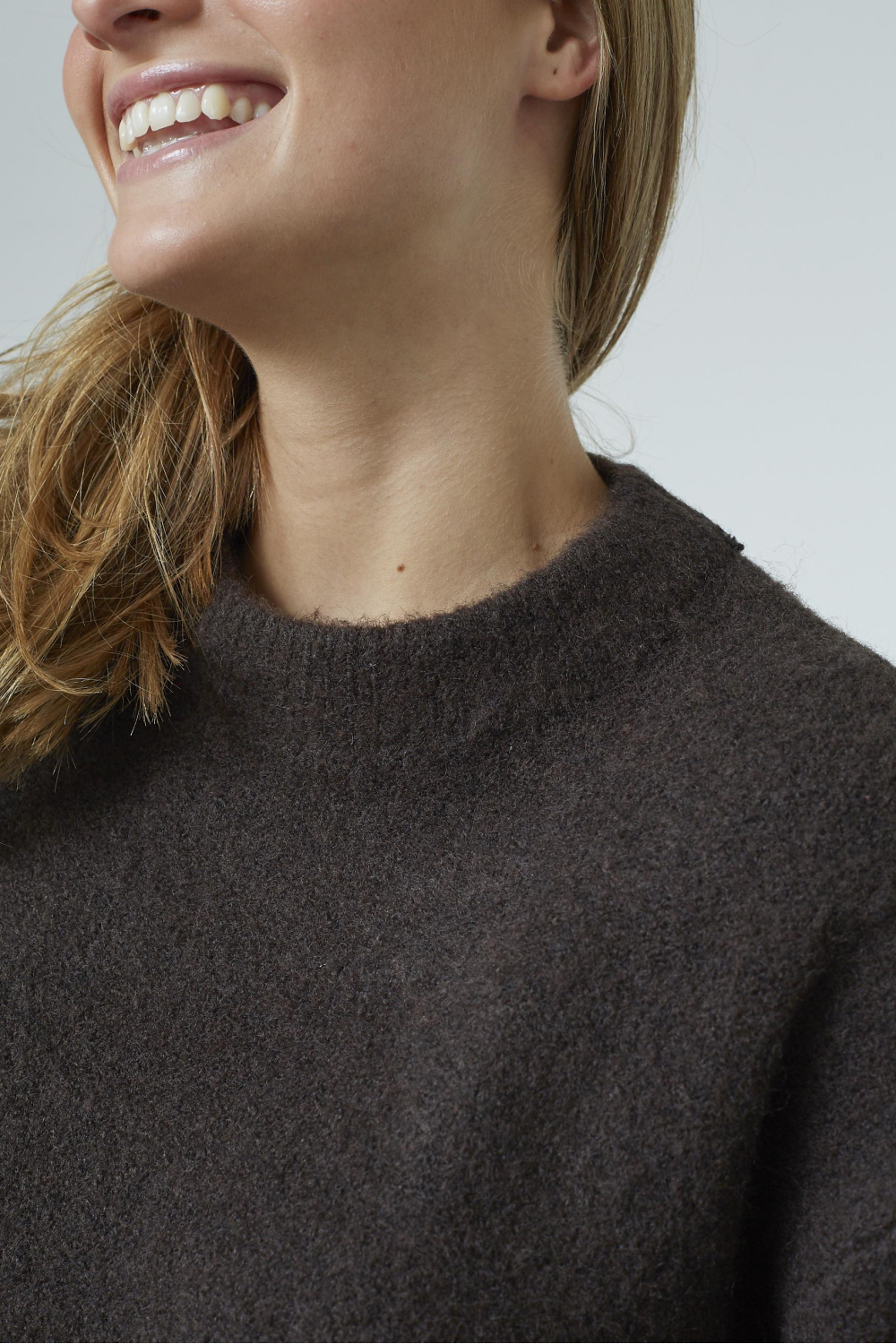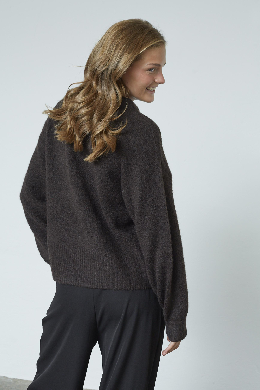 Deze gemêleerde trui van SisterS point in de kleur D. Chocolate biedt een comfortabele en stijlvolle aanvulling op je wintergarderobe. Met zijn regular fit en ronde hals geeft deze trui een ontspannen uitstraling, perfect voor zowel informele als meer geklede gelegenheden. De rijke chocoladetint en het subtiele gemêleerde patroon maken het een veelzijdig kledingstuk dat makkelijk te combineren is met verschillende stijlen. De trui is ontworpen met een normale lengte en lange mouwen, ideaal voor de koudere dagen. Het gebreide ontwerp zorgt voor een luxe look en voelt zacht aan op de huid, waardoor het zowel warm als comfortabel is. Of je nu een relaxte dag thuis hebt gepland of een casual afspraak buiten de deur, met deze SisterS point trui zit je altijd goed. Combineer met een donkere jeans of een stijlvol rokje voor een complete look die eenvoudig te dragen is.