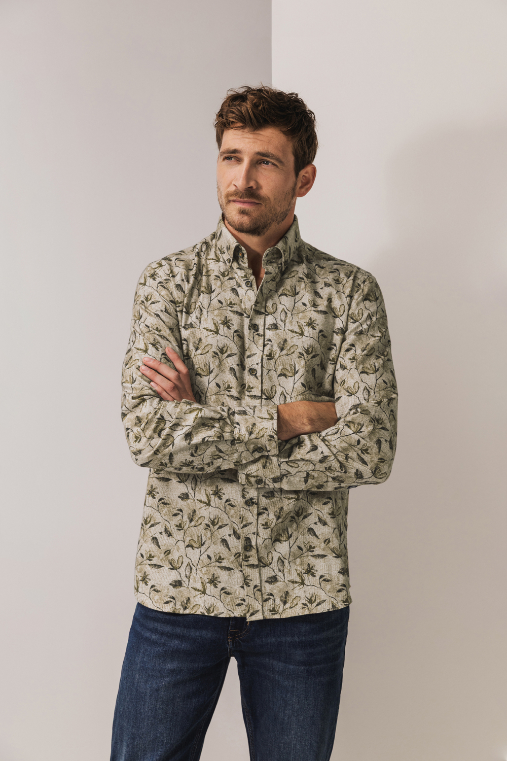 Dit casual overhemd van State of Art is een comfortabele keuze voor in jouw wintergarderobe. Met zijn subtiele bloemenpatroon en de button-down kraag, straalt het een nonchalante elegantie uit die moeiteloos past bij elke outfit. Het overhemd is gemaakt van 100% katoen, wat zorgt voor een zachte en ademende stof. Dankzij de regular fit pasvorm is er voldoende bewegingsruimte, waardoor je je de hele dag comfortabel voelt, of je nu op kantoor bent of een weekendje weg gaat. De lange mouwen en normale lengte maken het overhemd geschikt voor verschillende gelegenheden. Draag het bijvoorbeeld tijdens een informele bijeenkomst of een familiediner. Combineer het met een nette broek voor een nettere uitstraling, of kies voor jeans voor een meer relaxte look. De knoopsluiting voegt een klassieke touch toe, terwijl de natuurlijke tinten van het bloemenpatroon gemakkelijk te combineren zijn met andere kleuren in je kast. Het State of Art overhemd biedt een perfecte balans tussen stijl en comfort.