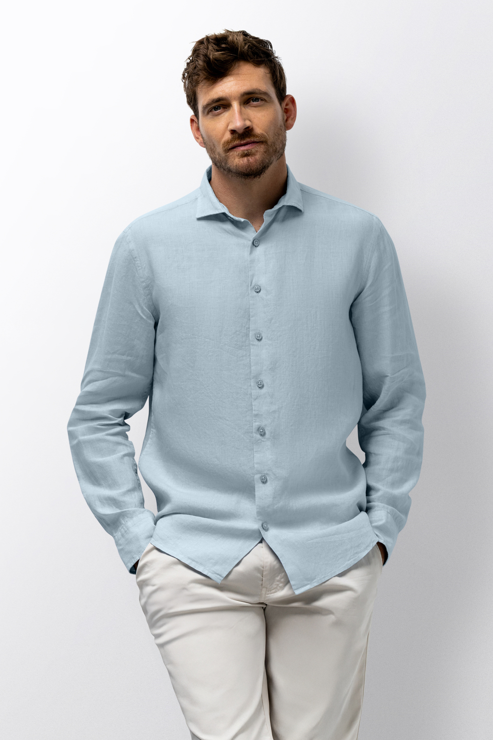 Dit stijlvolle gemêleerde overhemd van State of Art is een veelzijdige toevoeging aan je garderobe. Het lichtblauwe overhemd, gemaakt van 100% linnen, biedt een comfortabele en luchtige draagervaring die ideaal is voor de lente. Met zijn regular fit pasvorm en klassieke puntkraag behoudt het een casual uitstraling die perfect is voor zowel informele als zakelijke gelegenheden. De verfijnde knoopsluiting aan de voorkant maakt het gemakkelijk om dit overhemd eenvoudig doch elegant te dragen. Het lichte kleurenpalet zorgt ervoor dat dit State of Art overhemd eenvoudig te combineren is met verschillende stijlen. Draag het met een chino voor een relaxte dag op kantoor, of kies voor een jeans voor een ontspannen avondje uit. De lange mouwen geven het een tijdloze stijl, terwijl de natuurlijke stof garandeert dat je comfortabel blijft, zelfs op warmere dagen. Dit overhemd biedt niet alleen stijl, maar ook veelzijdigheid voor jouw dagelijkse activiteiten.