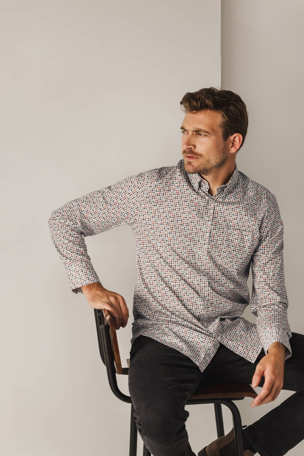 Dit casual overhemd van State of Art is een stijlvolle keuze voor iedere man. Het wordt gekenmerkt door een grafisch patroon in subtiele kleuren, wat een unieke en moderne uitstraling geeft. Gemaakt van 97% katoen met 3% elastaan, biedt het een comfortabele pasvorm zonder concessies te doen aan stijl. De button-down kraag en de lange mouwen maken het geschikt voor diverse gelegenheden, van een ontspannen avond uit tot een informele werkdag. Met zijn regular fit zit het overhemd soepel om je lichaam en de knoopsluiting zorgt voor een klassieke afwerking. De borstzak voegt niet alleen een praktisch element toe, maar accentueert ook de casual look van het kledingstuk. Het is ideaal om te combineren met een jeans voor een relaxte setting of te dragen onder een vest voor extra warmte in de wintermaanden. Dit State of Art overhemd is een veelzijdige aanvulling voor elke garderobe.