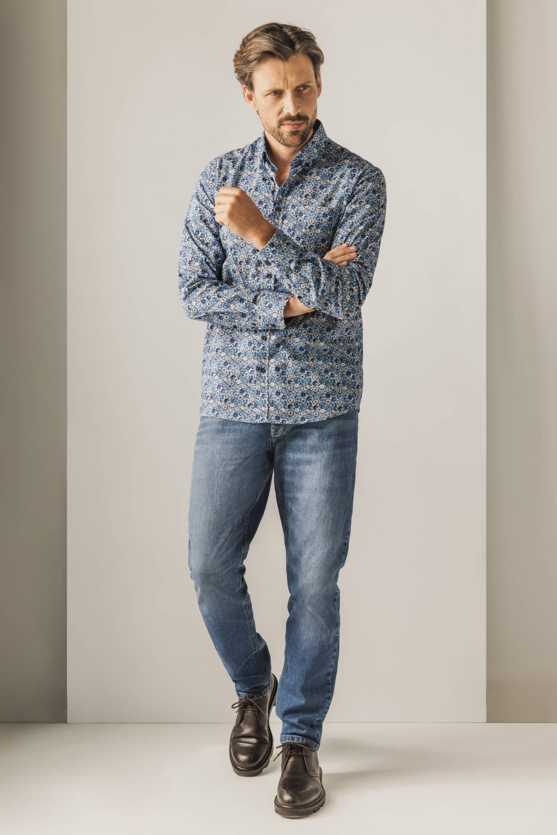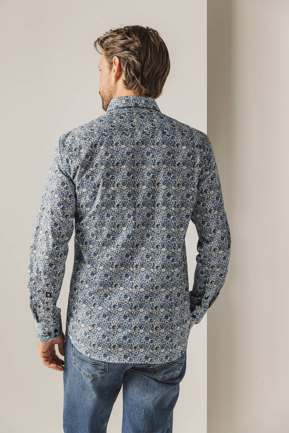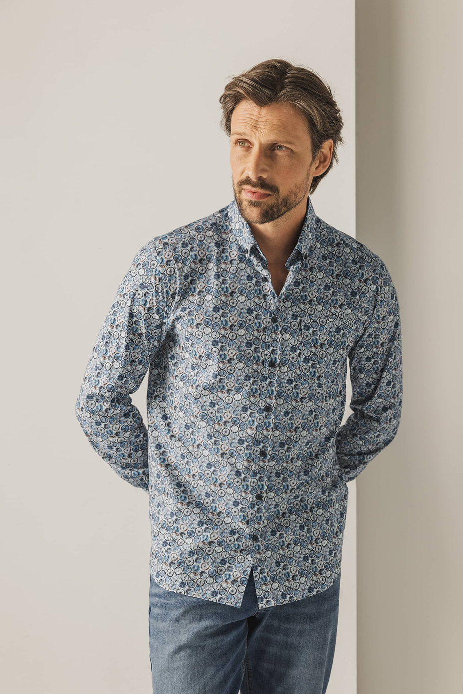 Overhemd van State of Art met lange mouwen en een button downkraag. Dit model heeft een opgestikte steekzak op borsthoogte en een allover grafisch patroon. Het overhemd sluit met knopen.