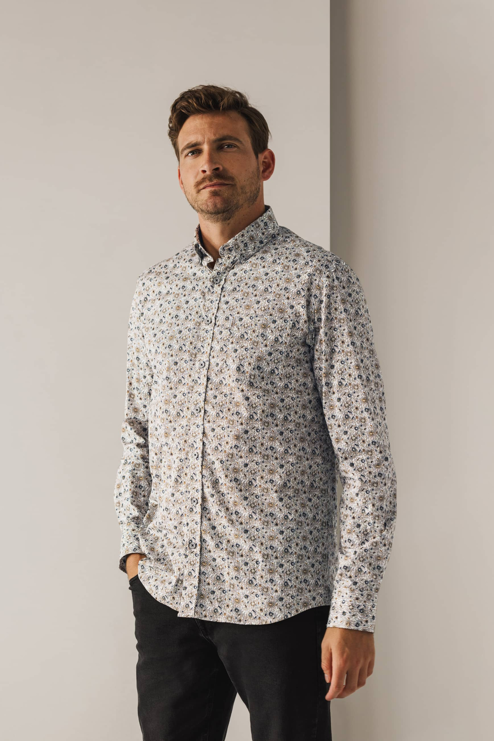 Dit stijlvolle grafische overhemd van State of Art is een perfecte aanvulling op je wintergarderobe. Met een regular fit en vervaardigd uit 97% katoen en 3% elastan, biedt het een ideale balans tussen comfort en stijl. De button-down kraag en de subtiele grafische print geven dit overhemd een moderne uitstraling. De bijpassende borstzakken zorgen voor een praktische toevoeging zonder in te boeten op design. Dit casual overhemd is ideaal voor verschillende situaties, of je nu een ontspannen dag doorbrengt of een meer formele bijeenkomst hebt. De lange mouwen en normale lengte maken dit State of Art overhemd veelzijdig in draagcomfort en stijl. Combineer het met een nette broek voor een avondje uit, of draag het met jeans voor een casual look. De knoopsluiting zorgt ervoor dat je makkelijk je eigen stijl kunt bepalen. Dankzij het unieke patroon en de uitstekende materiaalkeuze, ben je verzekerd van een comfortabele en stijlvolle optie, ongeacht de gelegenheid.