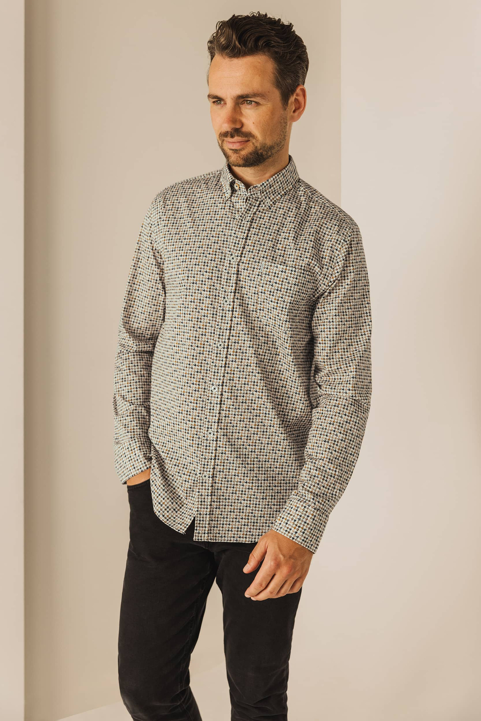 Dit regular fit grafische overhemd van State of Art is een stijlvolle keuze voor heren die comfort en design waarderen. Het overhemd is vervaardigd van 97% katoen en 3% elastan, wat zorgt voor een zacht en licht stretchbaar draagcomfort. Met de opvallende grafische print in subtiele tinten voegt het een vleugje kleur toe aan je casual garderobe. De button-down kraag en de knoopsluiting dragen bij aan een verzorgde uitstraling, terwijl de borstzakken functionaliteit bieden. Ideaal voor herfstdagen, dit State of Art overhemd met lange mouwen kan moeiteloos worden gecombineerd met een ontspannen chino of een strakke jeans voor een casual look. De normale lengte zorgt voor een moderne pasvorm die zowel nonchalant als gekleed gedragen kan worden. Of je nu een relaxed weekend met vrienden plant of een informele bijeenkomst bezoekt, dit overhemd past perfect in bijna elke setting en biedt je een tijdloze stijl met een eigentijdse twist.
