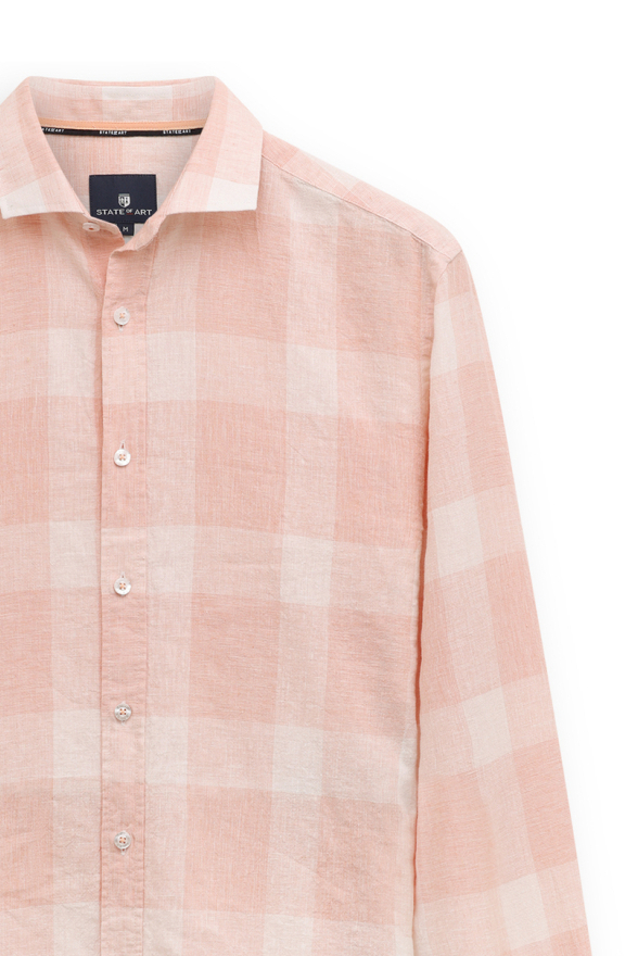 Dit State of Art overhemd combineert casual stijl met een verfijnde uitstraling, perfect passend bij diverse gelegenheden. Vervaardigd uit een hoogwaardige mix van 50% linnen en 50% katoen, biedt dit kledingstuk comfort en ademend vermogen. De regular fit pasvorm staat garant voor een ontspannen look en maakt het eenvoudig om te combineren met zowel jeans als nette broeken. De subtiele roze en witte ruitpatroon voegt een vleugje kleur toe zonder te overheersen, waardoor het overhemd zich leent voor zowel een relaxte dag uit als een semi-formele bijeenkomst. Met een klassieke puntkraag en knoopsluiting is dit overhemd zowel stijlvol als functioneel. De lange mouwen en normale lengte maken het ideaal voor de lente. Dit State of Art herenoverhemd is een veelzijdige toevoeging aan je garderobe, gemakkelijk te combineren met verschillende stijlen en outfits. Of je nu een wandeling maakt in het park of een informeel diner bijwoont, dit overhemd zorgt ervoor dat je er altijd verzorgd uitziet.