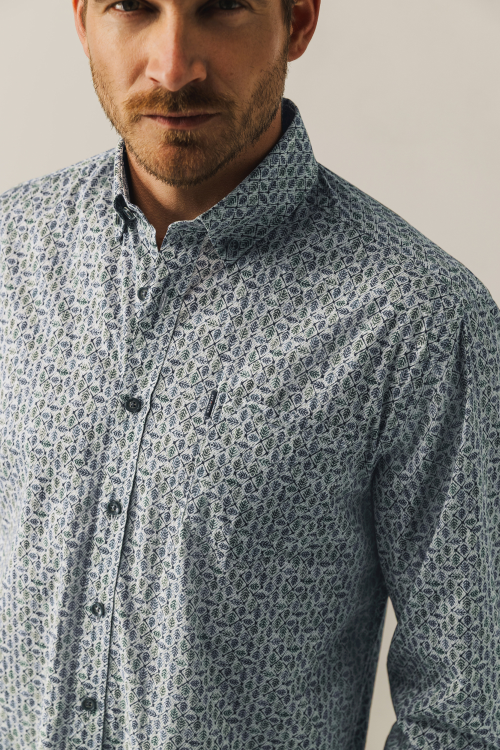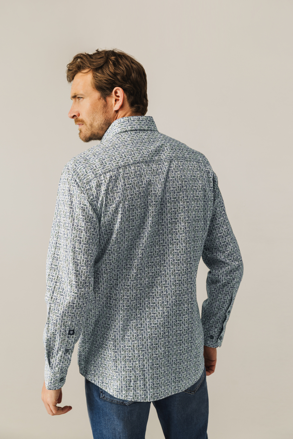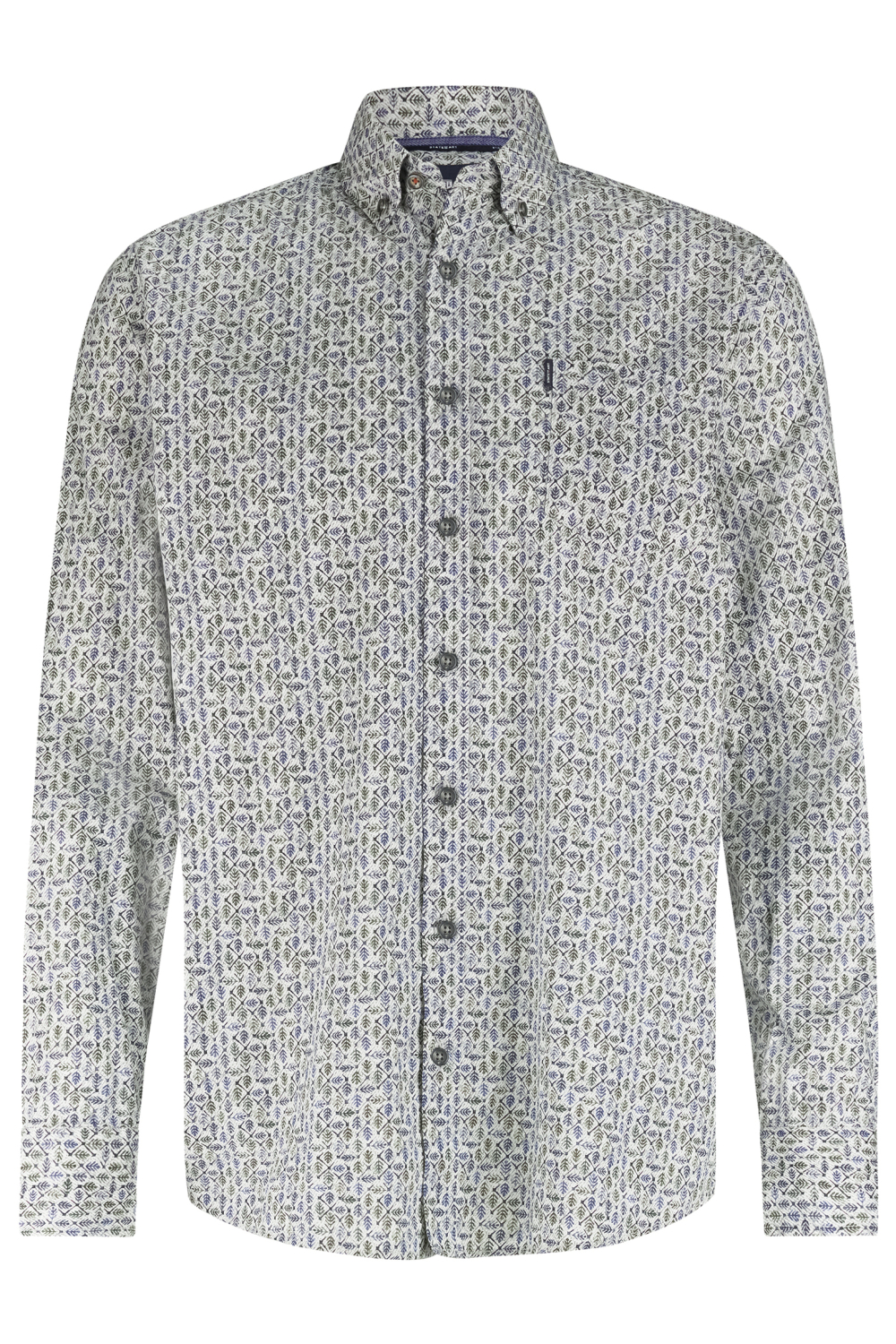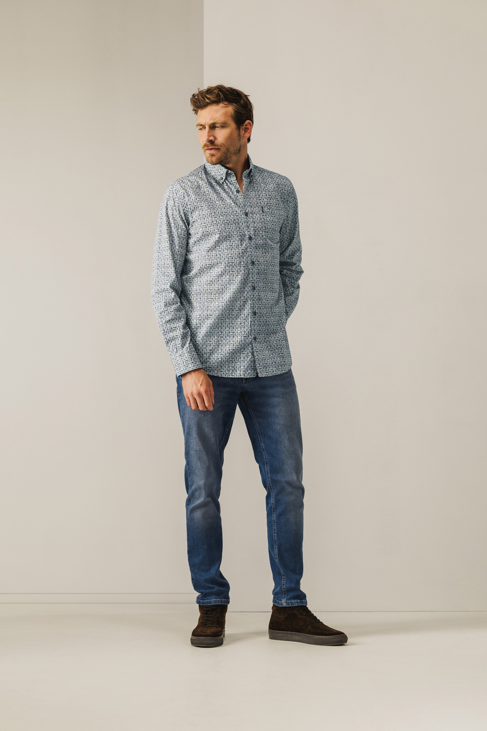 Dit casual grafisch overhemd van State of Art is een smaakvolle keuze voor heren die comfort en stijl zoeken. Het shirt is gemaakt van een zachte mix van 97% katoen en 3% elastan, wat zorgt voor flexibiliteit en draagcomfort. Het heeft een regular fit pasvorm die geschikt is voor verschillende lichaamstypen. De button-down kraag en knoopsluiting geven het overhemd een klassieke uitstraling, terwijl de subtiele borstzakken functioneel en stijlvol zijn. Met zijn normale lengte en lange mouwen is dit overhemd ideaal voor het herfstseizoen. Het grafische patroon van dit State of Art overhemd maakt het eenvoudig te combineren met zowel jeans voor een ontspannen uitstraling, als met een nette broek voor een meer verzorgde look. Of je nu een middagje uit gaat of een informele bijeenkomst hebt, dit overhemd past zich moeiteloos aan de gelegenheid aan. De mix van materialen zorgt ervoor dat het prettig en licht aanvoelt, terwijl de opvallende print een moderne touch toevoegt aan je dagelijkse outfit.