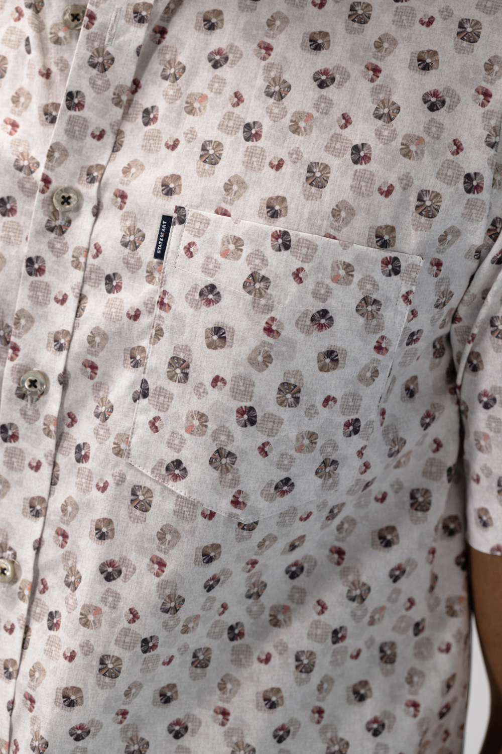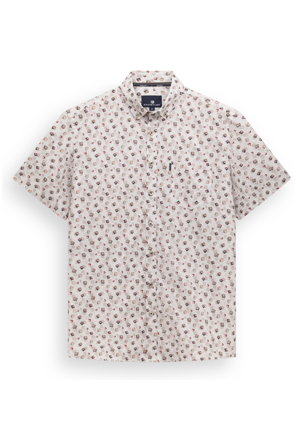 Dit casual overhemd van State of Art combineert moeiteloos stijl en comfort. Gemaakt van 97% katoen en 3% elastan, biedt het een prettig draagcomfort. De button-down kraag en knoopsluiting geven een klassieke uitstraling. Het speelse grafische patroon voegt een moderne twist toe, perfect voor de lente. De regular fit maakt dit overhemd veelzijdig en makkelijk te combineren. Ideaal voor een informele bijeenkomst of een ontspannen dagje uit. De kortere mouwen en normale lengte passen goed bij verschillende settings. Combineer het met een lichte chino voor een frisse look of draag het met je favoriete jeans voor een meer casual outfit. Met dit State of Art overhemd ben je altijd goed gekleed.