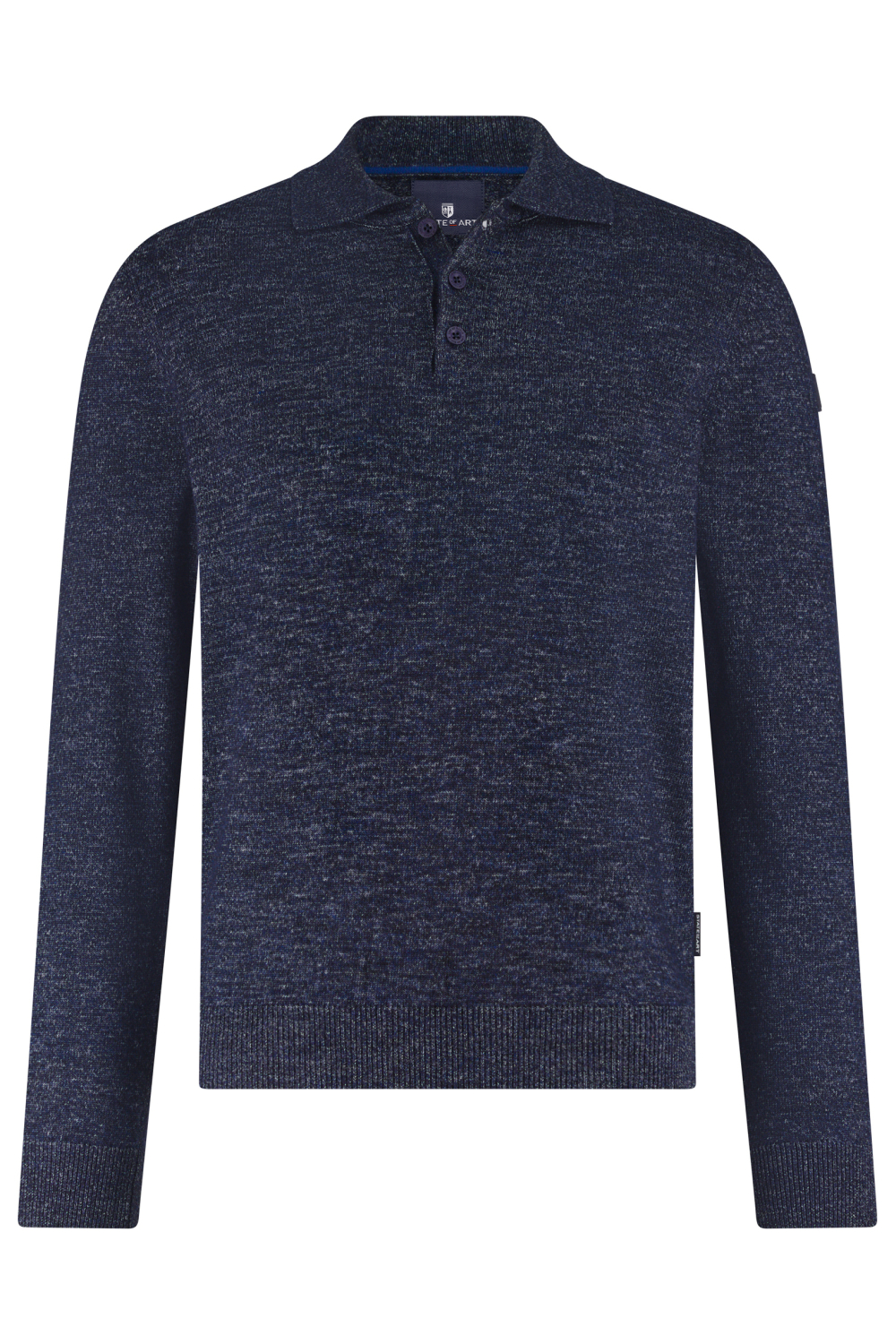 De gemêleerde State of Art polo in een diepe navy kleur is een tijdloze aanvulling op je herfstgarderobe. Met een regular fit pasvorm biedt deze polo maximaal comfort zonder in te boeten op stijl. De lange mouwen maken het perfect voor de herfst, terwijl de puntkraag en knoopsluiting zorgen voor een verfijnde uitstraling. Gemaakt van een hoogwaardige mix van acryl, katoen en polyester, voelt het niet alleen prettig aan, maar blijft het ook lang mooi. Of je nu kiest voor een casual dagje uit of een informele werkafspraak, deze polo biedt een veelzijdige look die moeiteloos combineert met zowel jeans als chino's. Dankzij de moderne knitwear-stijl straalt de State of Art polo subtiliteit en klasse uit, wat bijdraagt aan zijn veelzijdige karakter. De navy kleur met subtiele melange details geeft een extra dimensie aan je outfit. De normale lengte zorgt ervoor dat je hem zowel ingestopt als los kunt dragen, afhankelijk van de gelegenheid. De State of Art badge op de mouw voegt net dat beetje extra flair toe, zonder te overweldigen. Investeer in een stuk dat elk seizoen terug kan komen en zorg ervoor dat je altijd stijlvol voor de dag komt.