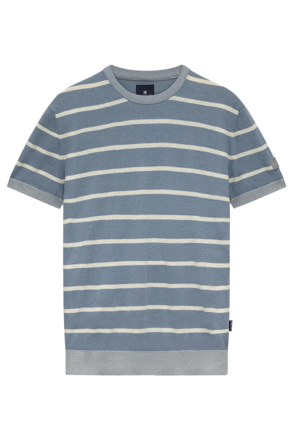 Dit stijlvolle streep T-shirt van State of Art is een veelzijdige keuze voor de moderne man. Met een regular fit pasvorm en een ronde hals, biedt dit kledingstuk zowel comfort als stijl. Het T-shirt is uitgevoerd in een subtiele kleurencombinatie van blauw en wit, met een gedetailleerde streepprint die het item een frisse uitstraling geeft. De korte mouwen en normale lengte maken het ideaal voor het voorjaar, wanneer je net dat beetje meer luchtigheid wilt toevoegen aan je outfit. Het State of Art T-shirt komt uit de knitwear collectie en is perfect voor diverse gelegenheden. Draag het tijdens een ontspannen middag in het park of combineer het met een nette pantalon voor een casual kantooroutfit. Dankzij de duurzame fabricage ben je niet alleen verzekerd van een trendy look, maar draag je ook bij aan een verantwoorde garderobe. Dit T-shirt is makkelijk te matchen met verschillende looks en zal snel een favoriet worden in je garderobe.
