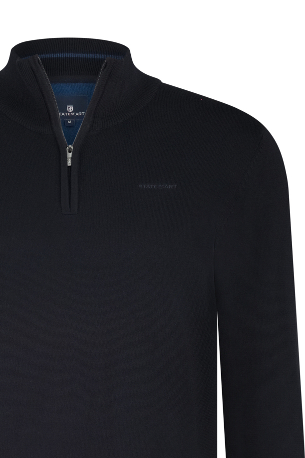 Deze gemêleerde trui van State of Art is een perfecte keuze voor de herfst. Gemaakt van 100% katoen, biedt deze regular fit trui een comfortabele pasvorm die zowel stijlvol als praktisch is. De high neck en stijlvolle ritssluiting geven een moderne twist aan een klassiek ontwerp. Ideaal voor informele bijeenkomsten of een ontspannen dagje thuis, deze trui voelt zacht aan op de huid en houdt je warm tijdens de frisse dagen. De rijke, donkere kleur van de trui zorgt ervoor dat hij gemakkelijk te combineren is met verschillende kledingstijlen. Draag hem met een jeans voor een casual look of combineer hem met een chino voor een meer geklede uitstraling. Met zijn lange mouwen en normale lengte is deze trui veelzijdig genoeg om mee te variëren. Of je nu gaat voor een wandeling in het park of een avondje uit, deze trui van State of Art biedt de perfecte balans tussen comfort en stijl.