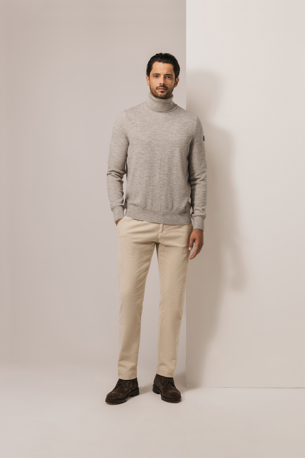 Deze gemêleerde trui van State of Art is een stijlvolle aanvulling op jouw wintergarderobe. Dankzij de colkraag en de regular fit pasvorm biedt deze trui niet alleen comfort maar ook een verfijnde look. De combinatie van acryl, katoen en polyester zorgt voor een zachte en warme stof, wat ideaal is tijdens de koudere seizoenen. Met zijn neutrale tint en lange mouwen is dit knitwear item makkelijk te combineren met zowel casual als meer gekleedere outfits. De subtiele gemêleerde structuur geeft de trui een eigentijdse uitstraling die geschikt is voor diverse gelegenheden. Of je nu een casual dag op kantoor hebt of een ontspannen weekend brunch, deze trui weet zich goed aan verschillende settings aan te passen. Draag hem op een donkere jeans voor een moderne look of combineer met een nette pantalon voor een wat formelere stijl. Met deze State of Art trui ben je verzekerd van een stijlvolle verschijning, ongeacht de gelegenheid.