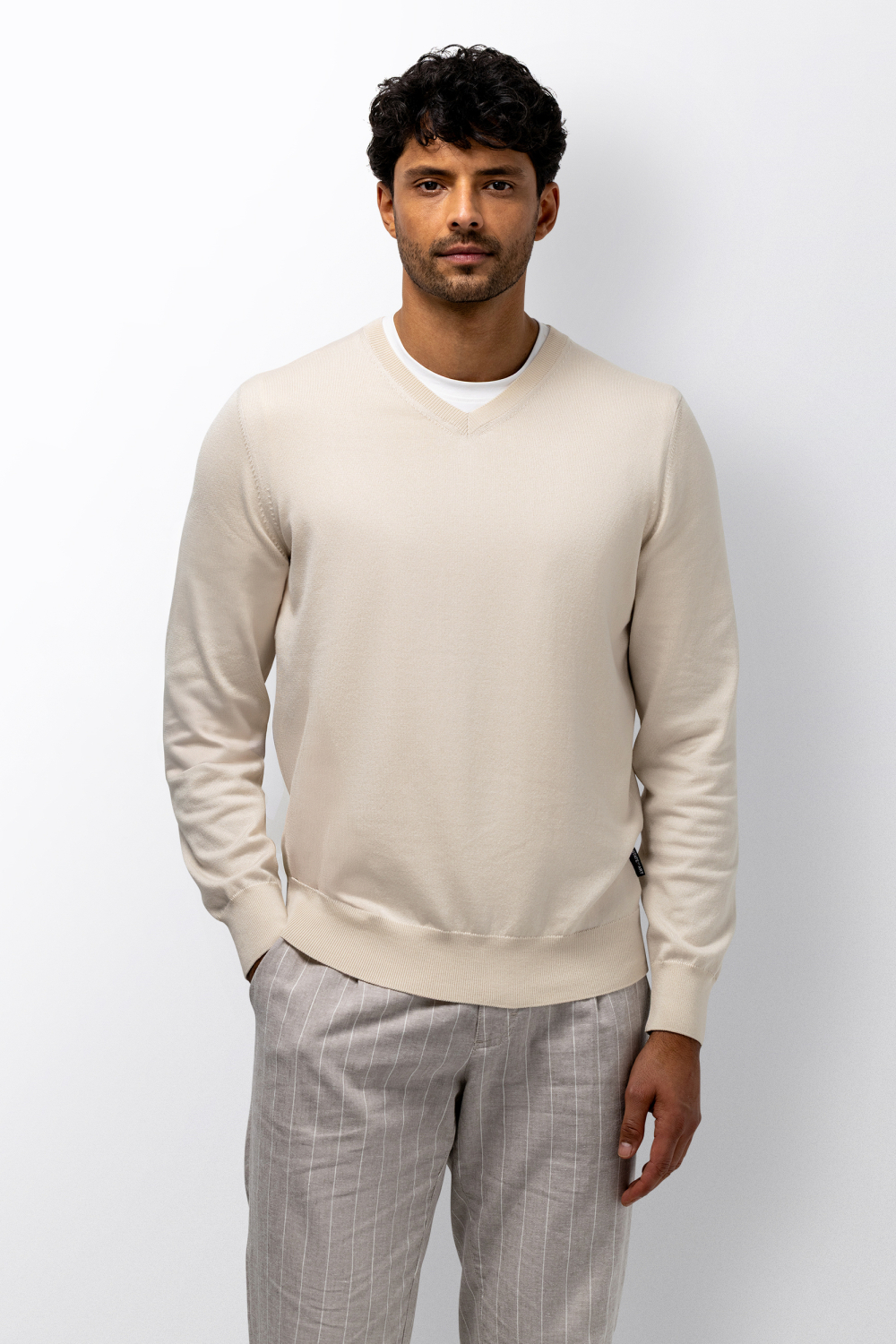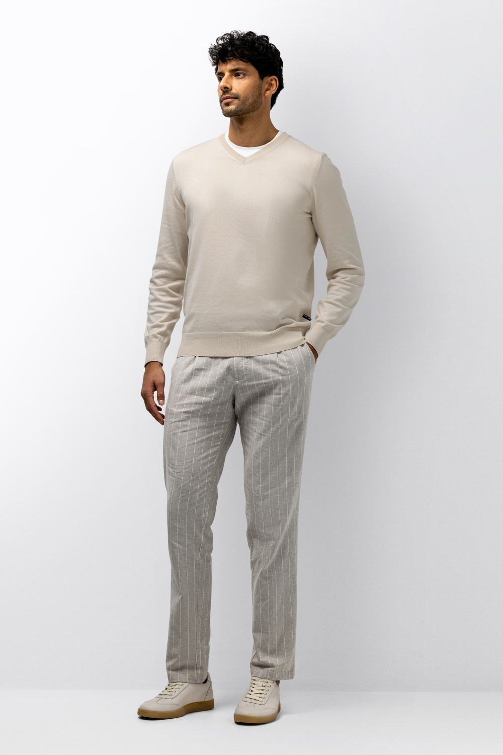 Deze verfijnde trui van State of Art, met een V-hals en gemêleerde textuur, biedt comfort in een reguliere pasvorm. De subtiele beige kleur maakt het een veelzijdig kledingstuk voor verschillende gelegenheden. De lange mouwen en normale lengte geven de trui een klassieke uitstraling waarmee je altijd goed voor de dag komt. Helemaal geschikt voor de lente, past deze trui moeiteloos bij uiteenlopende outfits. Met het stijlvolle knitwear-design is deze trui van State of Art zowel casual als gekleed prima te dragen. Combineer hem met een nette broek voor werk of een diner, of draag hem met een jeans voor een relaxte dag. Door de fijne afwerking en het gebruik van kwalitatief materiaal voel je je altijd op je gemak. Of je nu op kantoor bent of een dagje uit gaat, deze trui is een vertrouwde keuze.