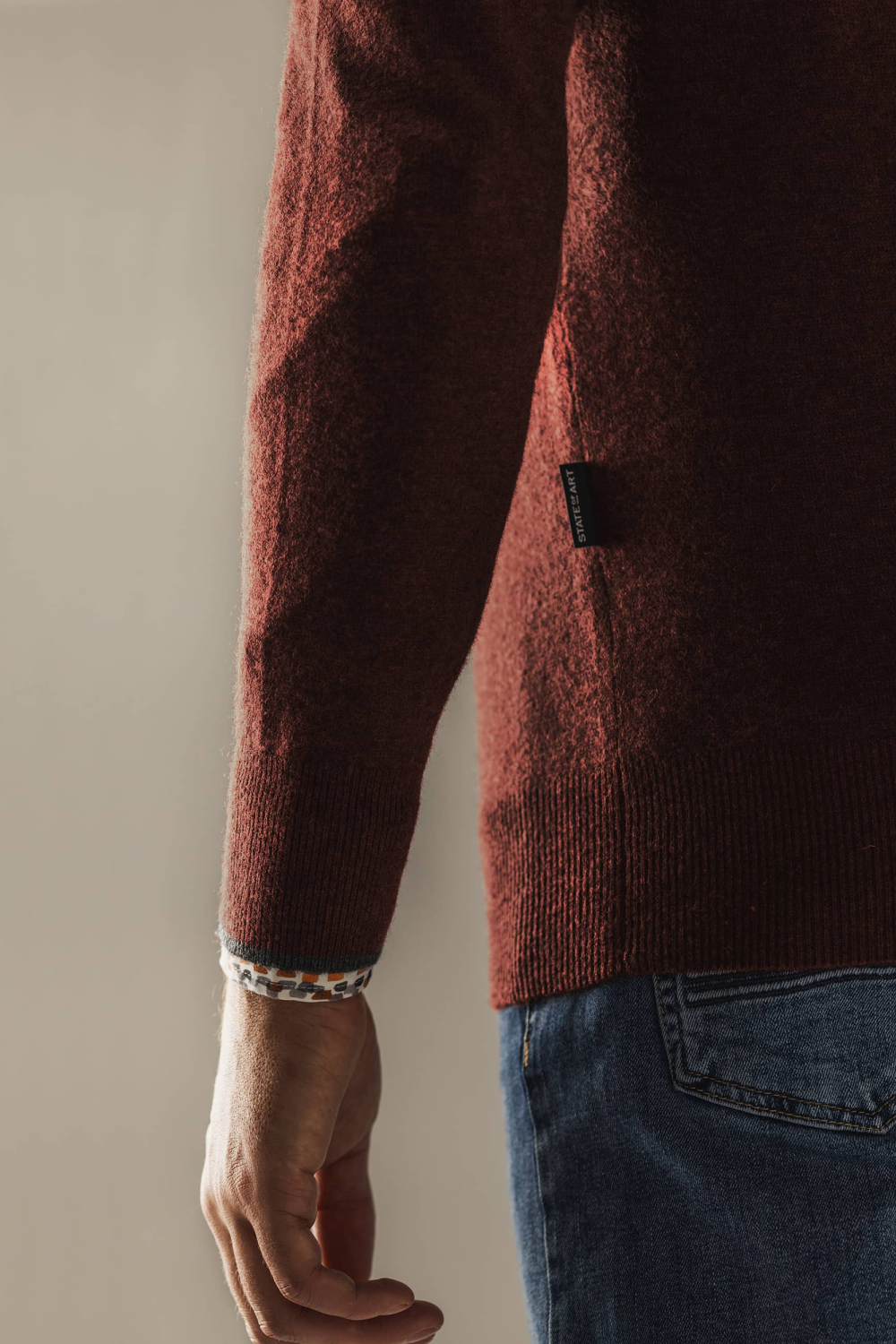 Deze gemêleerde trui van State of Art combineert stijl en comfort. Het is een regular fit, ontworpen voor heren die hun garderobe met veelzijdige knitwear willen uitbreiden. De warme bordeauxrode kleur en de subtiele V-hals geven deze trui een tijdloze uitstraling. Gemaakt van 100% Merino wol, biedt het een zachte en luxueuze ervaring die ideaal is voor de wintermaanden. De lange mouwen en normale lengte maken deze trui geschikt voor verschillende gelegenheden. Of je nu een dag op kantoor doorbrengt of een casual avond uit plant, deze trui past perfect bij een jeans of een nette pantalon. De fijne textuur en het klassieke patroon zorgen ervoor dat je altijd stijlvol voor de dag komt. Combineer hem met een mooi overhemd voor een extra verfijnde look. Met deze trui kies je voor een stijlvolle aanvulling op je wintergarderobe.