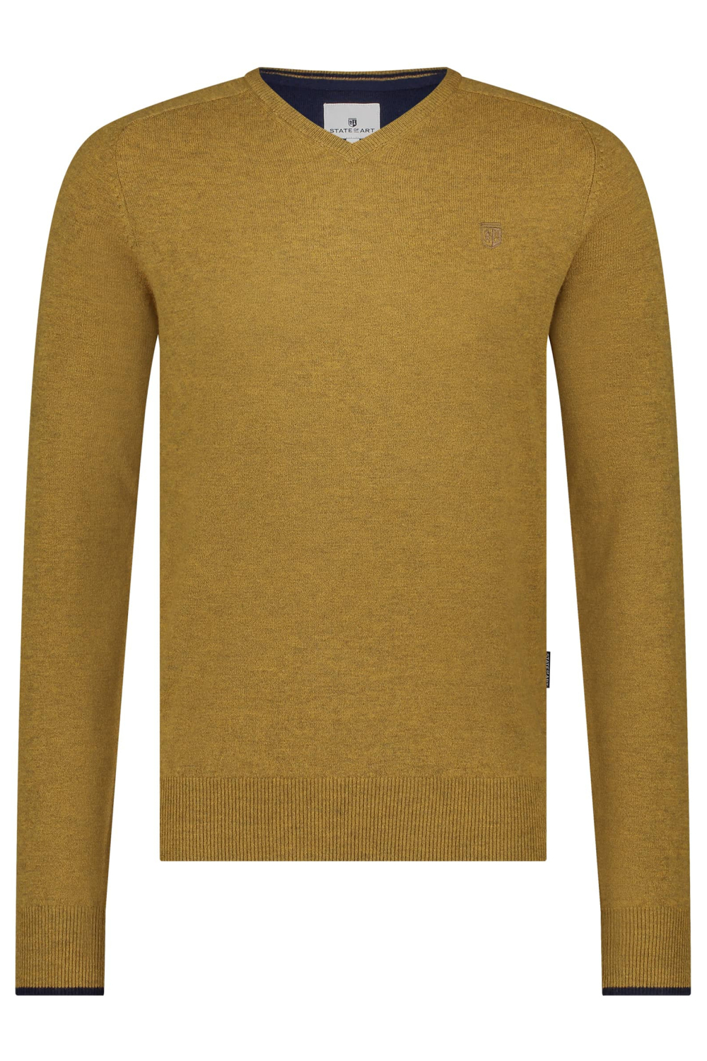 De State of Art merino herentrui is een veelzijdige aanvulling op jouw wintergarderobe. Deze gemêleerde trui met een stijlvolle V-hals is ideaal voor zowel casual als formele gelegenheden. Gemaakt van 100% merinowol, biedt het niet alleen superieur comfort, maar houdt het je ook warm op koude dagen. De normale lengte en regular fit zorgen voor een comfortabele pasvorm, terwijl de lange mouwen en het fijngebreide patroon een tijdloze uitstraling geven. De subtiele borduursels van het logo op de borst geven een verfijnde touch aan het geheel, perfect voor een elegante look. Of je nu op weg bent naar kantoor of een informele bijeenkomst, deze trui past zich moeiteloos aan elke situatie aan. Combineer met een nette chino voor een zakelijke uitstraling, of draag hem ontspannen bovenop je favoriete jeans voor een weekenduitje. De warme, rijke kleur voegt een vleugje verfijning toe aan je outfit en maakt het makkelijk te stylen met verschillende kleuren en patronen. Met deze State of Art trui voeg je een praktisch en stijlvol item toe aan je garderobe, dat je gedurende het hele seizoen met plezier zult dragen.