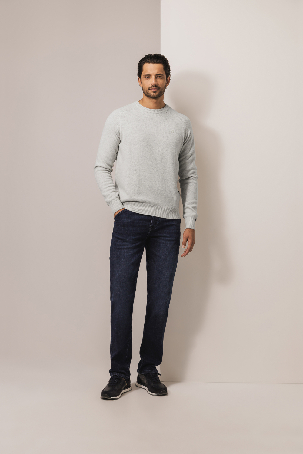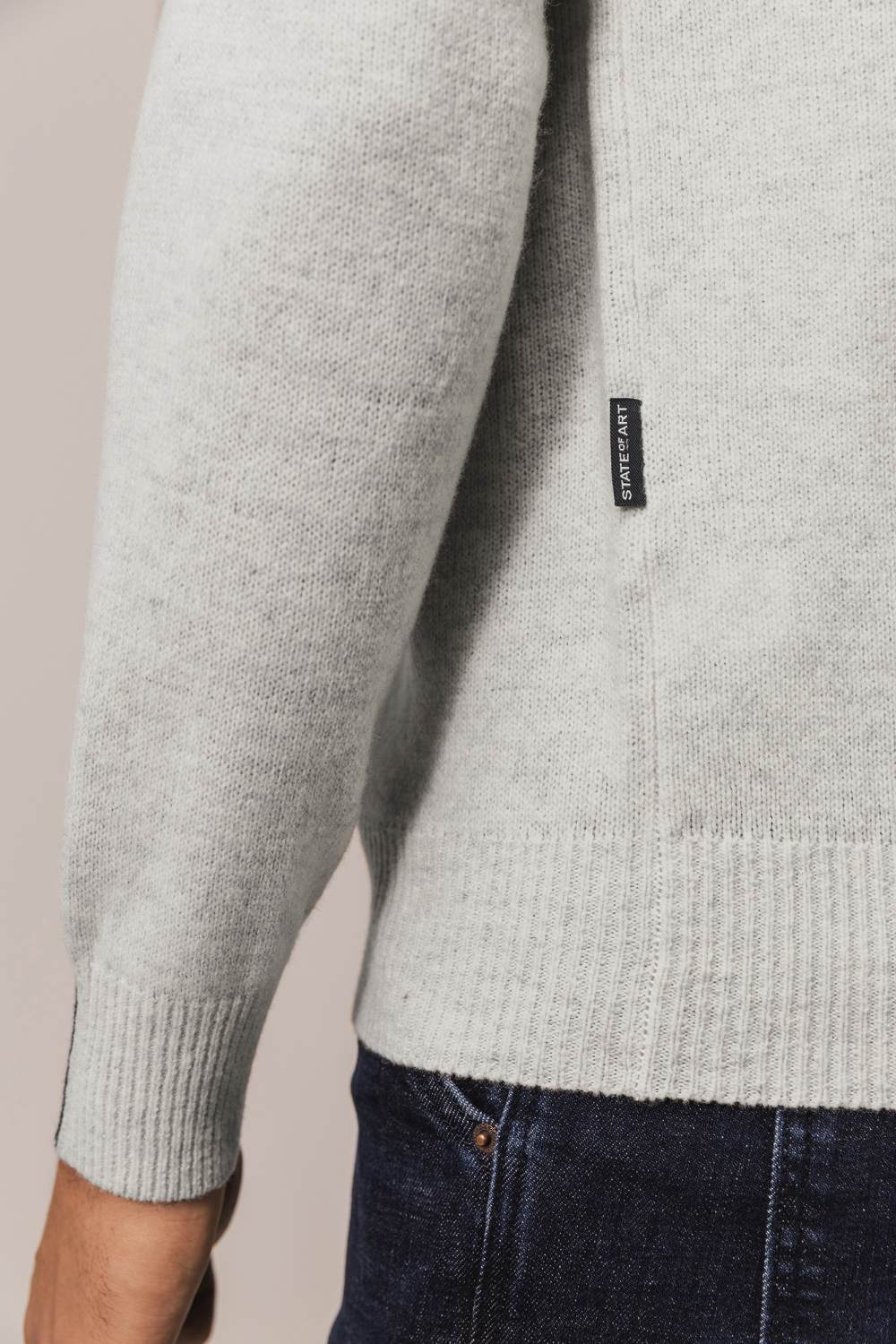 Deze gemêleerde grijze trui van State of Art is een tijdloze must-have voor je wintergarderobe. De trui is gemaakt van 100% wol, wat zorgt voor een warm en comfortabel gevoel tijdens koude dagen. Met een regular fit pasvorm biedt deze trui zowel stijl als bewegingsvrijheid. De lange mouwen en de subtiele structuur langs de schouders geven een modern tintje, terwijl de ronde halslijn klassiek blijft. Deze State of Art trui is perfect voor verschillende gelegenheden. Of je nu een casual dagje uit gepland hebt, of een meer formele bijeenkomst, deze trui past altijd. Combineer hem met een donkere jeans voor een relaxte uitstraling of draag hem onder een blazer voor een meer geklede look. Deze veelzijdige trui is ideaal om je warm te houden en er tegelijkertijd stijlvol uit te zien, wat de dag ook brengt.