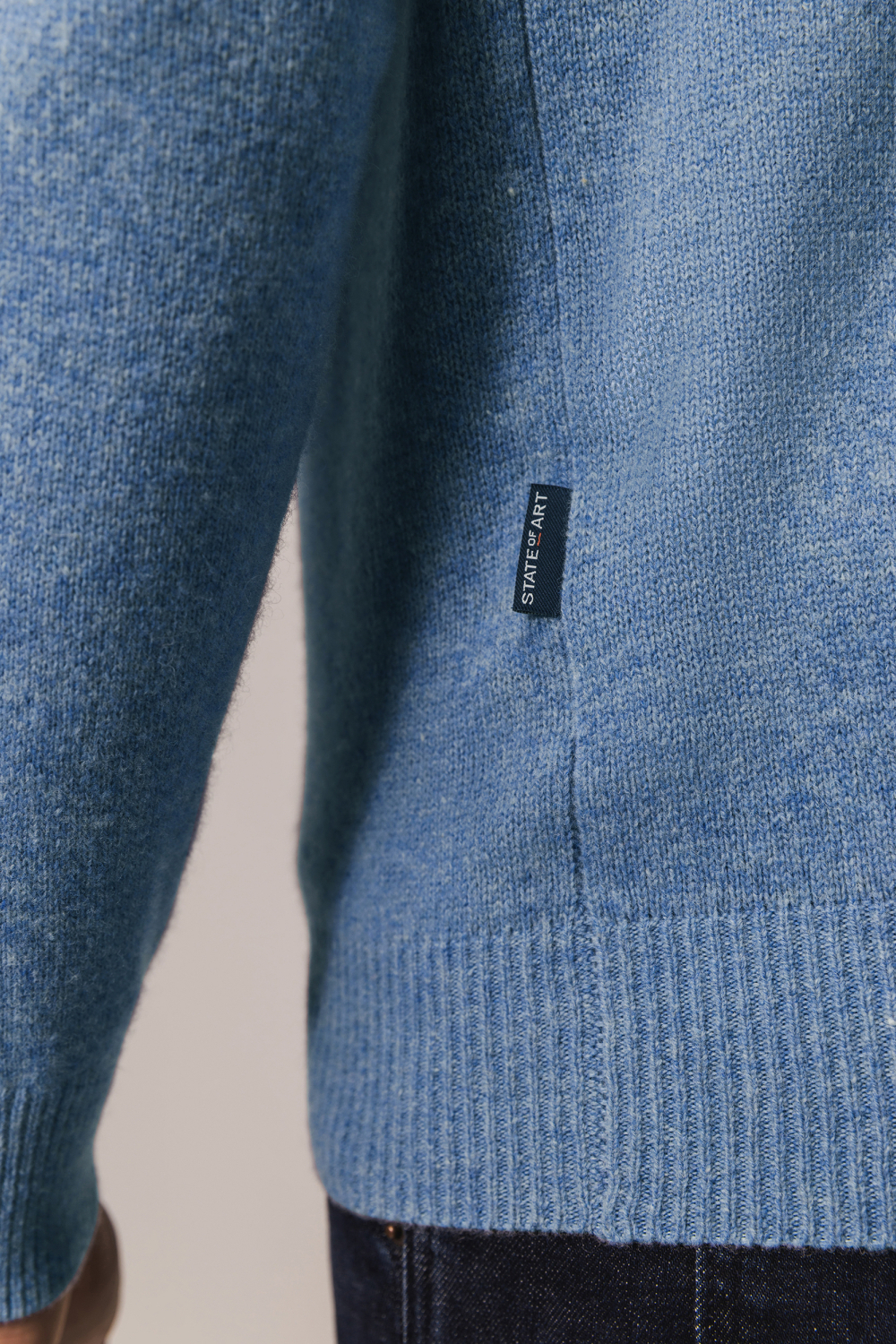 Deze gemêleerde trui van State of Art mag niet ontbreken in je wintergarderobe. Gemaakt van 100% wol, biedt deze trui een zachte en warme ervaring, ideaal voor de koudere dagen. De reguliere pasvorm en ronde hals zorgen voor een klassieke uitstraling die comfortabel aanvoelt. Zijn subtiele gemêleerde print voegt net dat beetje extra toe zonder overweldigend te zijn. Het zachte blauwe kleurschema maakt het een veelzijdig kledingstuk dat bij veel gelegenheden past. De lange mouwen van deze State of Art trui zorgen ervoor dat je warm blijft, en de ribgebreide boorden bieden extra comfort. Door zijn normale lengte is hij gemakkelijk te combineren met zowel jeans als een nette broek. Perfect voor informele uitjes, een dag op kantoor, of een avondje uit. Of je nu naar een zakelijke afspraak gaat of een weekendje weg plant, deze trui biedt een tijdloze en stijlvolle optie.