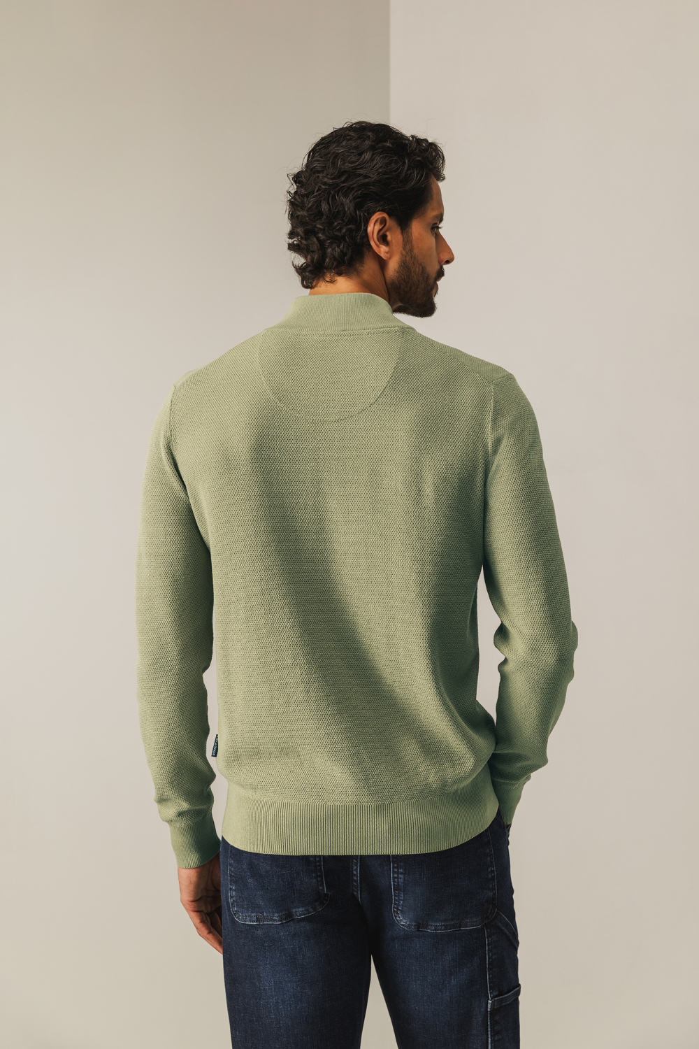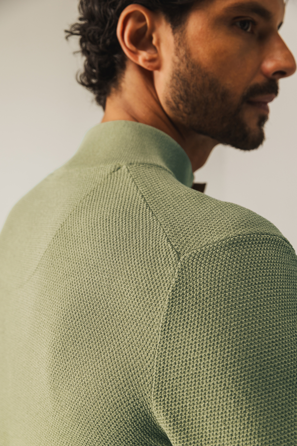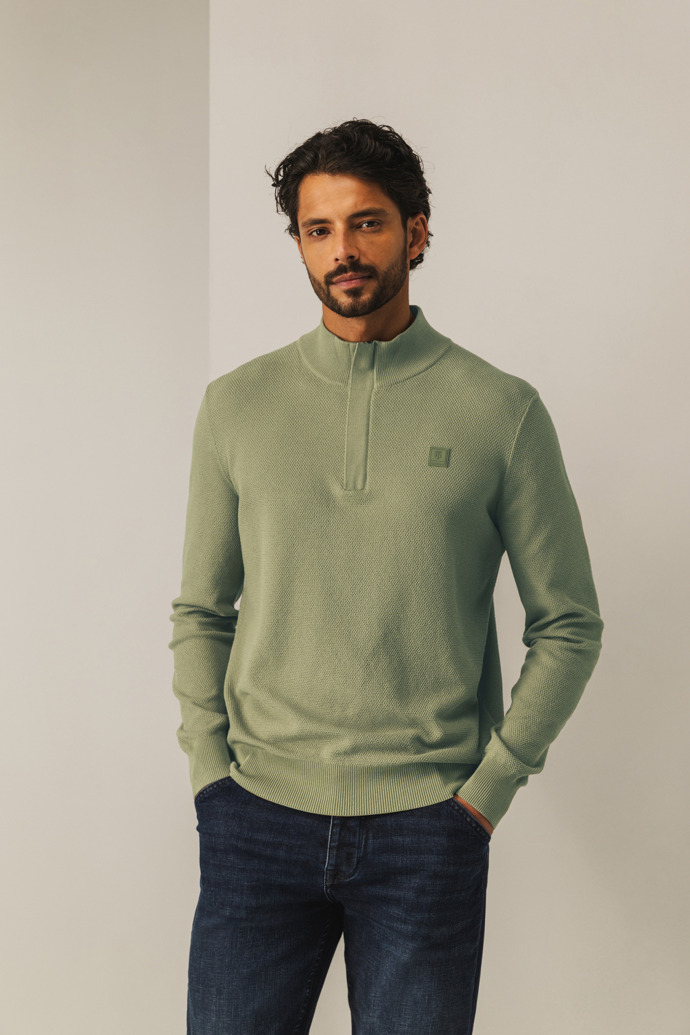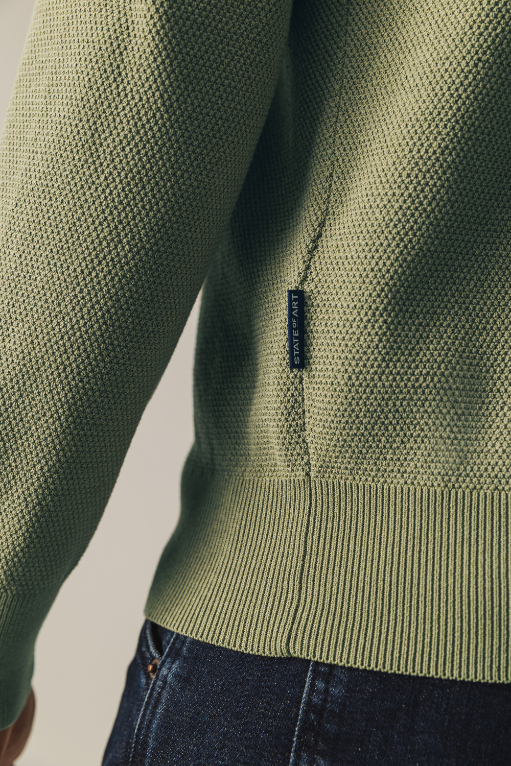 Deze stijlvolle trui van State of Art is een veelzijdige aanwinst voor je herfstgarderobe. Met zijn subtiele structuurpatroon en een zachte groene tint biedt deze regular fit trui niet alleen comfort maar ook klasse. De high neck met rits zorgt voor een moderne touch en maakt het gemakkelijk om de warmte te reguleren tijdens koelere dagen. Gemaakt van 65% viscose en 35% polyamide, voelt deze trui aangenaam zacht aan op de huid, en is het een perfecte keuze voor dagelijks gebruik. Of je nu een dag op kantoor hebt of een informele bijeenkomst met vrienden, deze State of Art trui past bij verschillende gelegenheden. Combineer hem met een nette broek voor een verfijnde look of ga voor een casual uitstraling door hem te dragen met je favoriete jeans. De normale lengte en lange mouwen maken deze trui ideaal voor gelaagde outfits wanneer de temperatuur daalt. Voeg deze knitwear toe aan je collectie en ervaar het comfort en de stijl die het merk biedt.