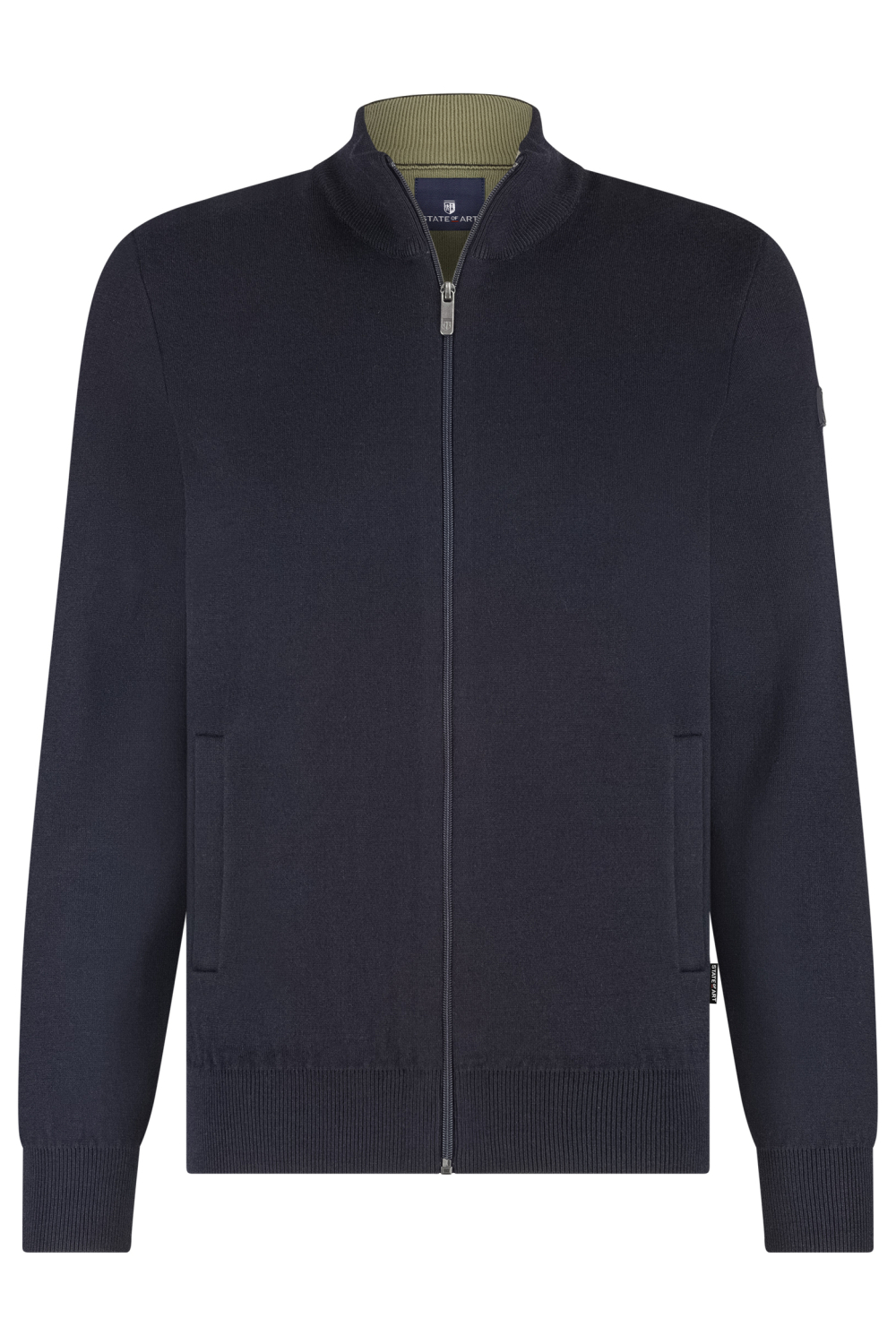 Dit navy vest van State of Art is een stijlvolle toevoeging aan je herfstvoorraad. Met een comfortabele regular fit pasvorm en een hoge hals biedt het warmte en stijl voor de koelere dagen. Gemaakt van een hoogwaardige mix van katoen, wol en acryl, voelt het vest zacht aan op je huid en houdt het je comfortabel. De subtiele steekzakken geven je de mogelijkheid kleine essentials bij de hand te houden, terwijl de ritssluiting het geheel een eigentijdse uitstraling geeft. Dit vest is ideaal voor zowel casual als nettere gelegenheden. Combineer het moeiteloos met een spijkerbroek voor een ontspannen weekendlook of draag het over een overhemd voor een smart-casual outfit op kantoor. De lange mouwen en normale lengte maken dit vest een veelzijdige keuze die je gemakkelijk kunt mixen en matchen met jouw favoriete kledingstukken.