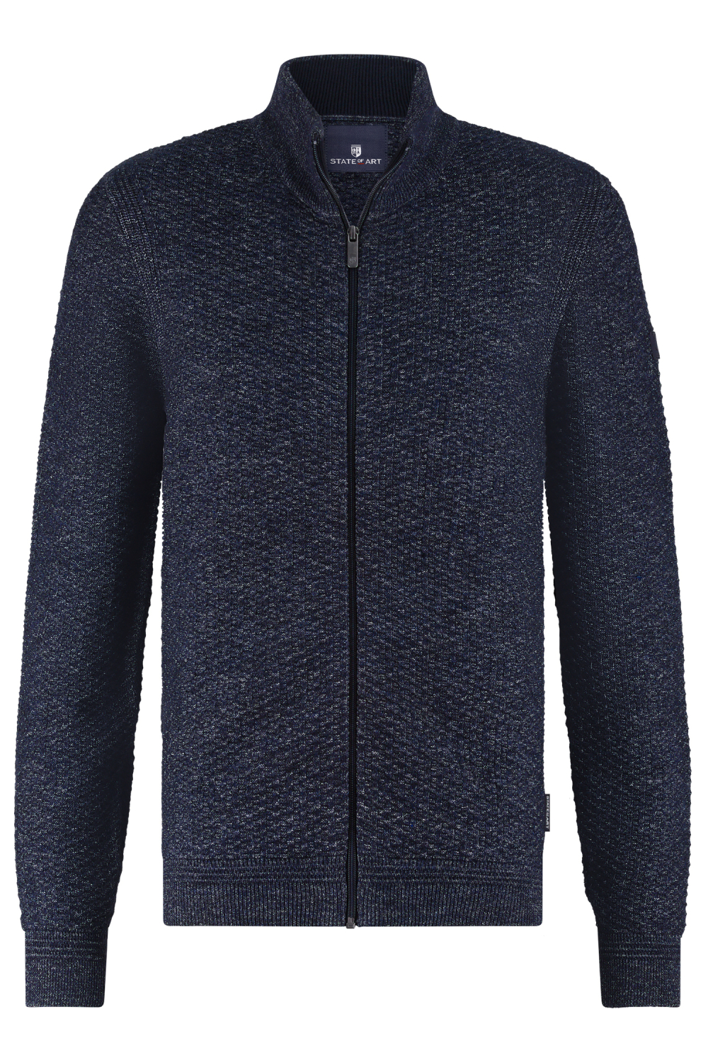 Dit stijlvolle vest van State of Art is een perfecte toevoeging aan je herfstgarderobe. Het regular fit vest heeft een high neck en een robuuste rits aan de voorkant, wat zorgt voor een tijdloze look. Gemaakt van een mix van acryl, katoen en polyester, biedt het niet alleen een comfortabel gevoel maar ook een opvallende gestructureerde look. De diepblauwe kleur met een subtiele reliëfpatroon voegt een extra dimensie toe aan je alledaagse outfit. Met zijn veelzijdige design kan je dit vest eenvoudig combineren met een klassieke jeans voor een casual uitstraling, of draag het over een overhemd voor een meer formele gelegenheid. De lange mouwen versterken het comfort op koelere dagen, terwijl de afwezigheid van zakken een gestroomlijnde look geeft. Of je nu een dag op kantoor hebt of een ontspannen weekend doorbrengt, dit vest is een veelzijdige keuze die stijl en functionaliteit moeiteloos combineert.