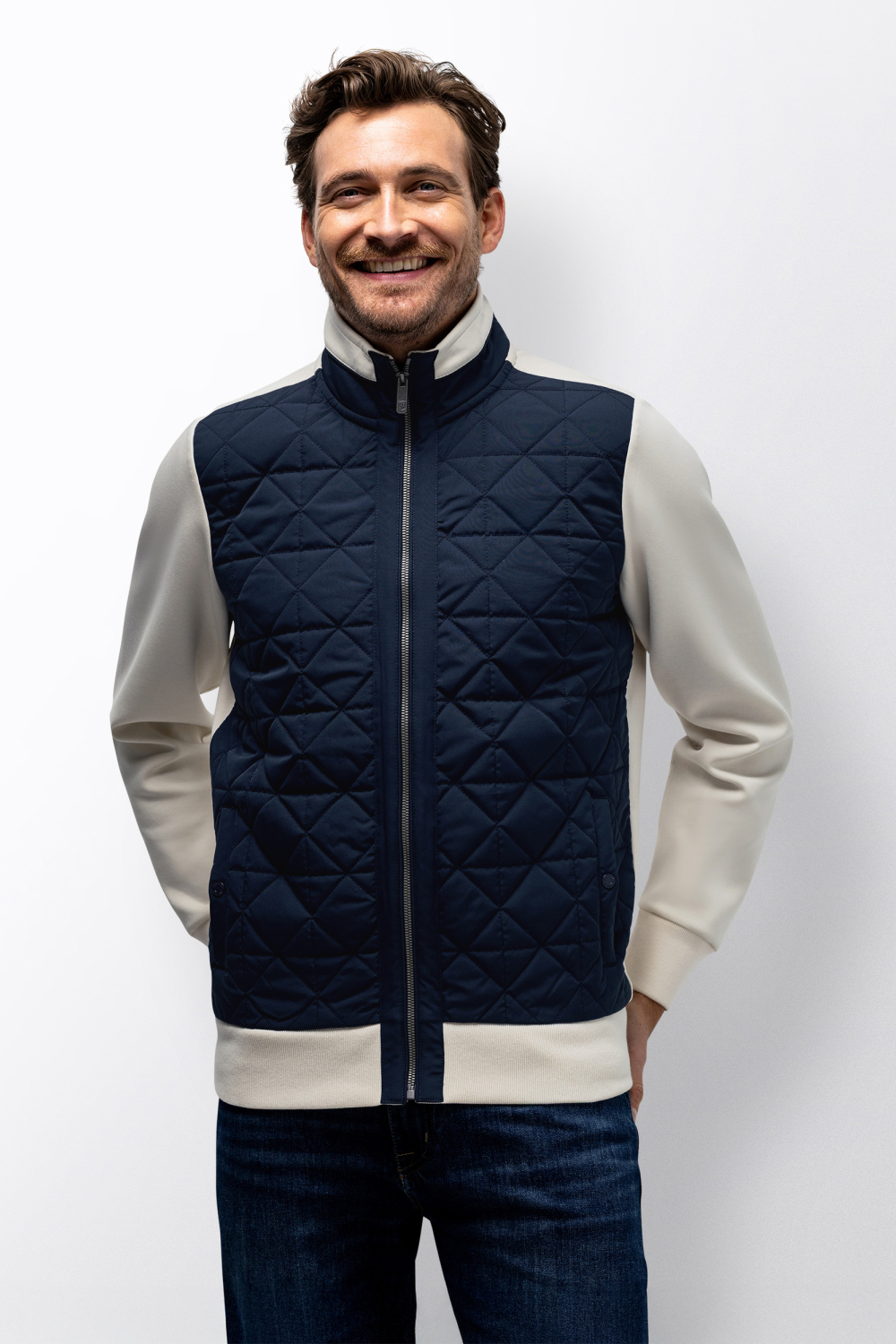 Deze comfortabele navy vest van State of Art is een veelzijdige keuze voor je garderobe. Met zijn regular fit pasvorm en structuurpatroon straalt het een casual, moderne stijl uit die ideaal is voor de lente. Het vest is gemaakt van een hoogwaardige mix van 80% katoen, 15% polyester en 5% elastan, waardoor het zowel zacht als flexibel aanvoelt. De high neck biedt extra bescherming tegen de kou, terwijl de praktische rits en steekzakken zorgen voor functionaliteit en een relaxte uitstraling. Dankzij de lange mouwen en de normale lengte is dit vest perfect te combineren met een jeans voor een casual day out, of over een shirt voor extra warmte tijdens een frisse lenteochtend. De subtiele details, zoals de stijlvolle rits en de functionele zakken, maken het een veelzijdig kledingstuk dat gemakkelijk in je dagelijkse outfits past. Of je nu onderweg bent naar een informeel samenzijn of een koelere avondwandeling maakt, dit vest voegt een praktische en stijlvolle laag toe aan je outfit.